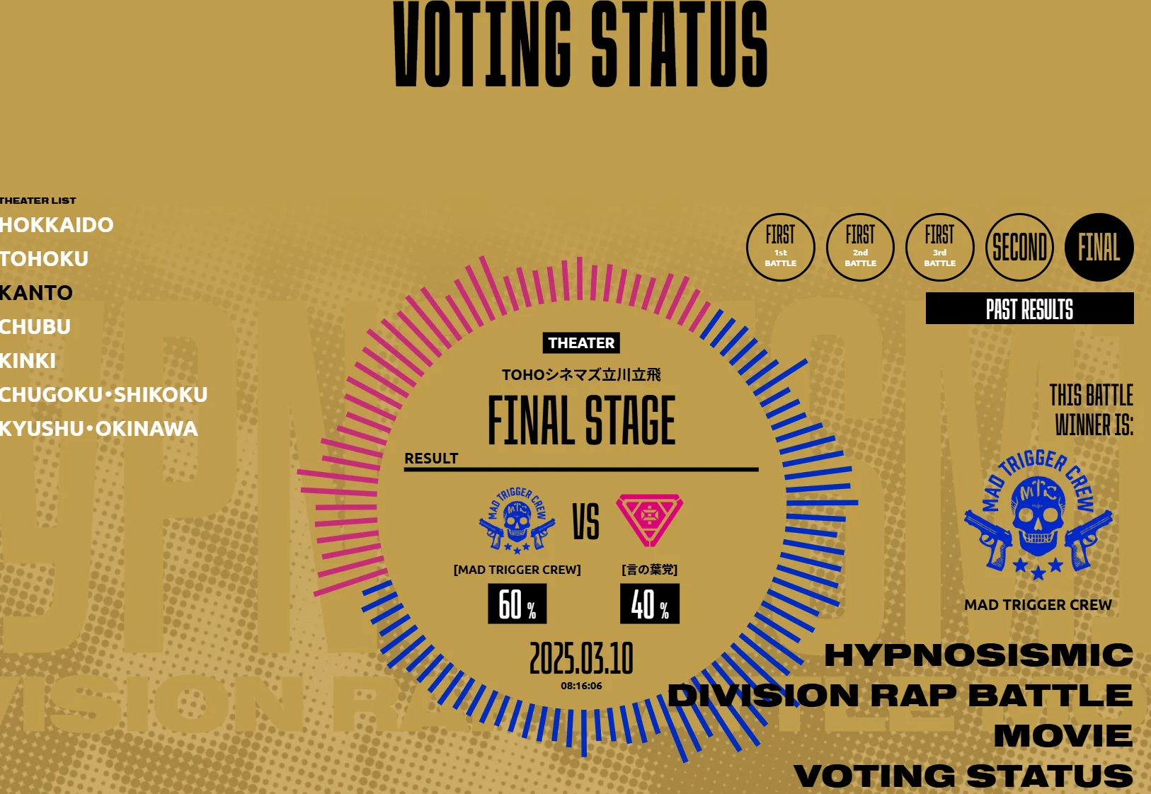Fling Posseが一回戦で勝った以外はほぼ前回と裏張りになったので、新しい曲と話ばかりで刺激的に楽しめました。