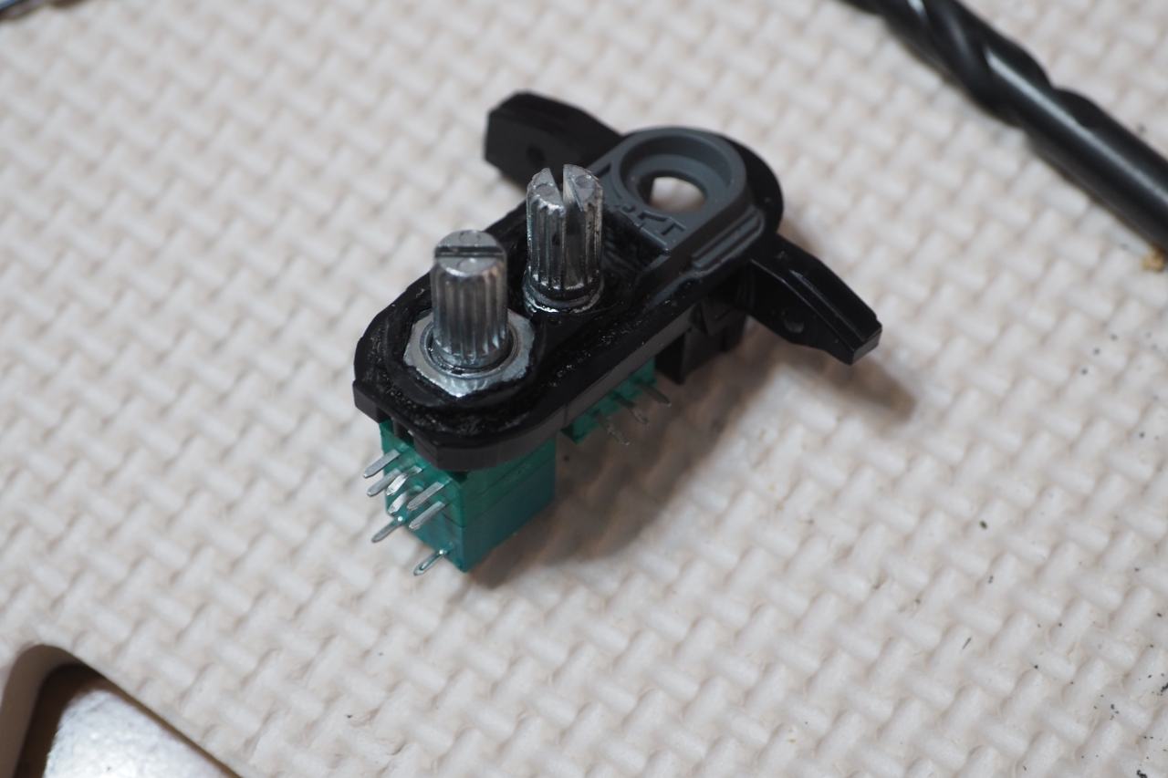 穴は空いた。そしてポテンショメーターを2個、干渉せずに付けられそう。