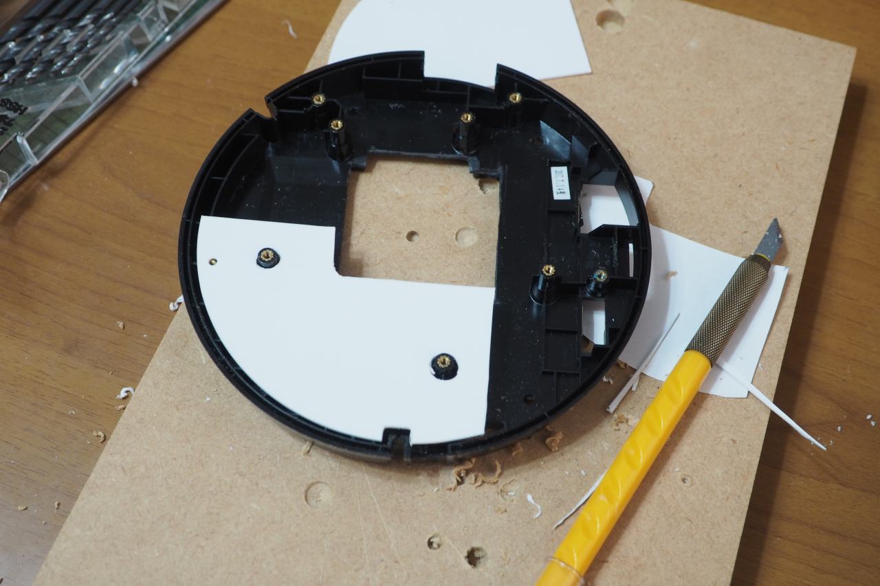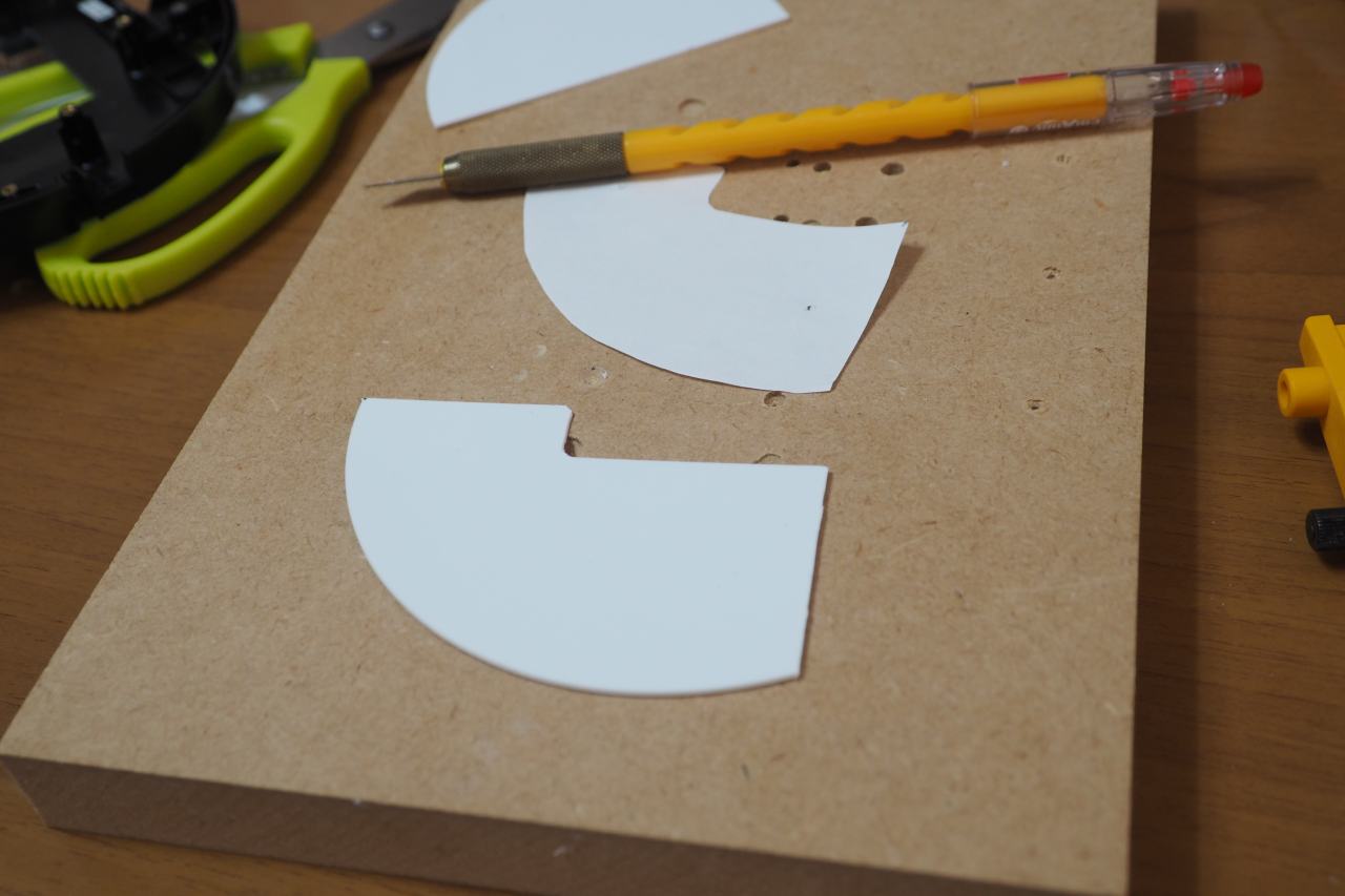 ここで登場するのが、この日のためにセリアで買い込んでおいた「ポリスチレン・プレート」。ようするにプラバンです。1mm厚。これが100円で入手できるのは本当に有りがてえ。