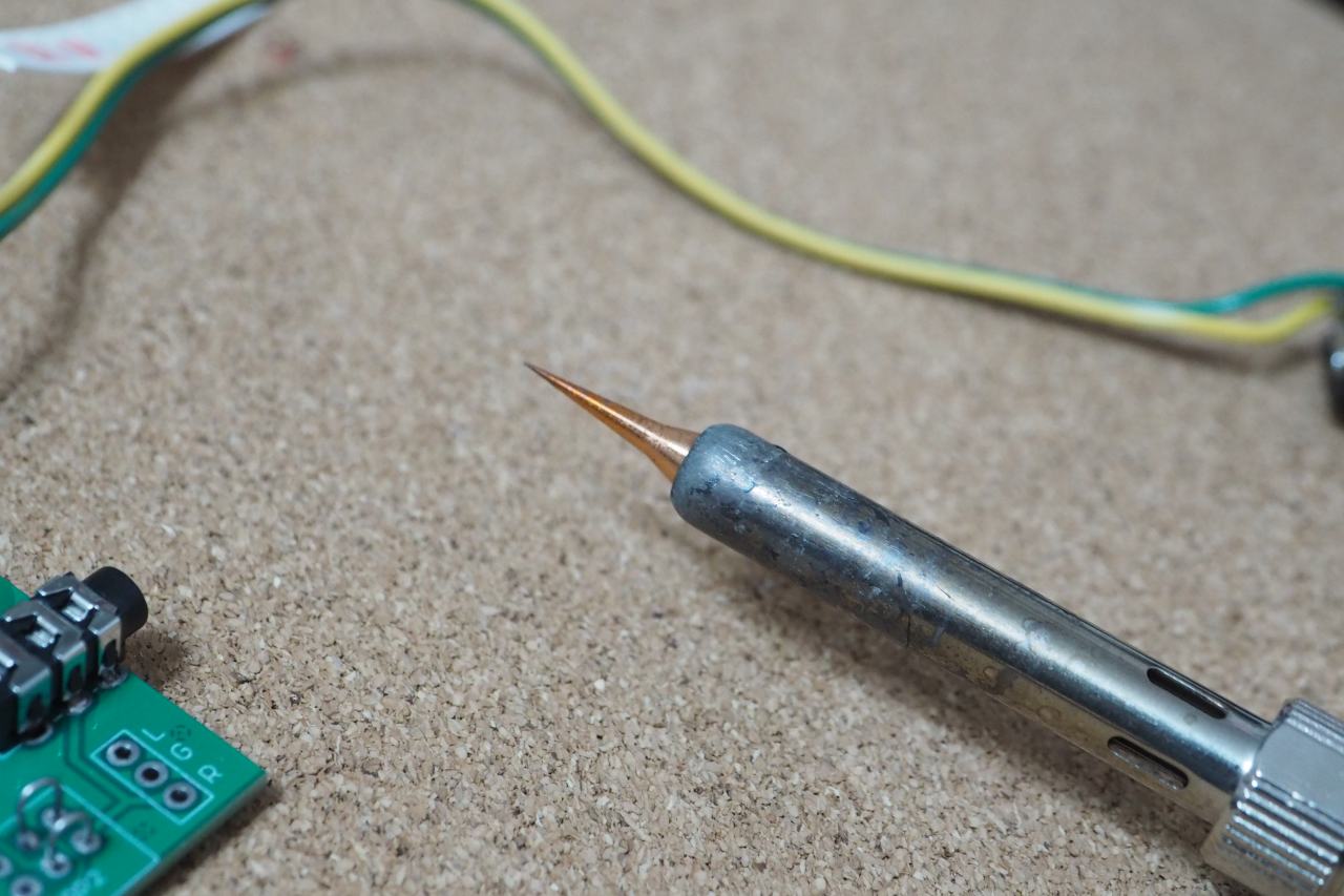 ハンダのコテ先も「いつもの標準型」ではなく極細タイプに付け替えておきました。
