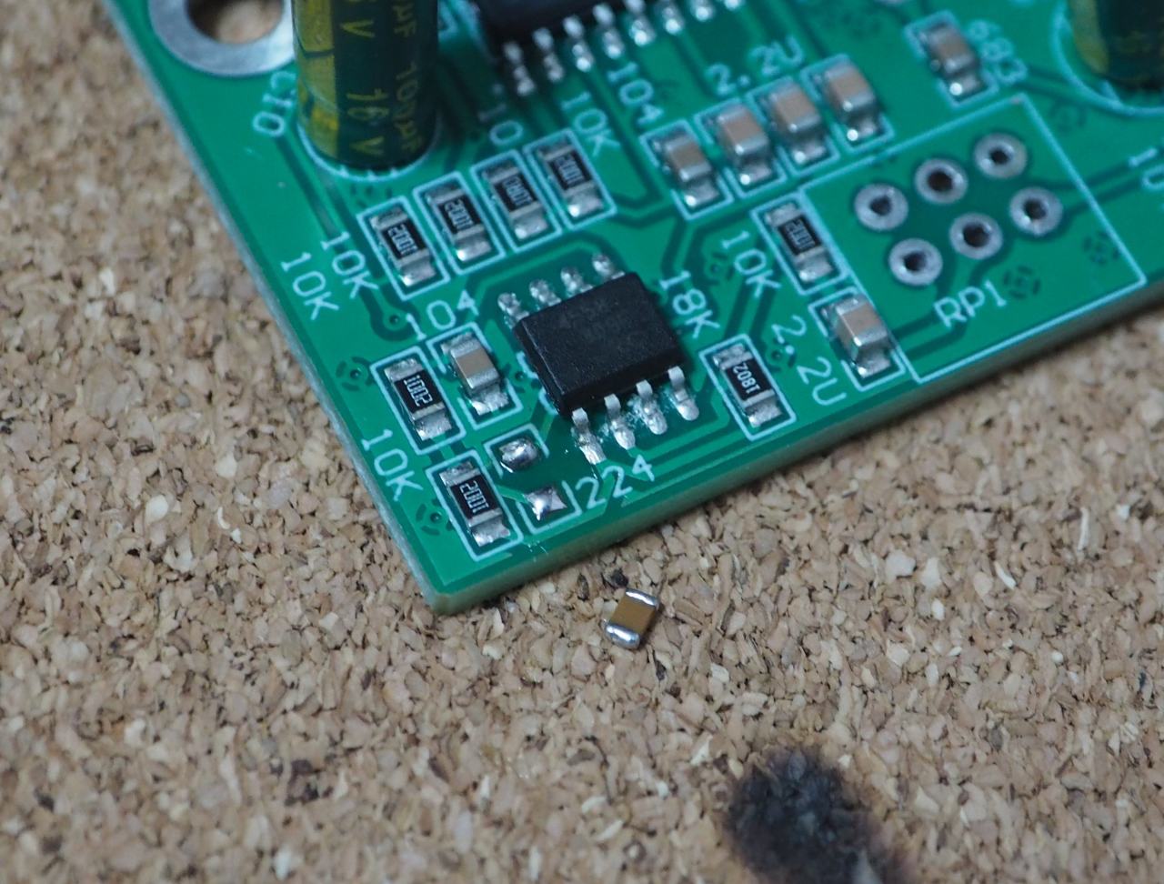 買い込んでおいたSMTキャパシタで基板上のCを換装します。