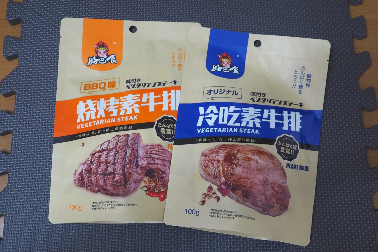 かなり辛い商品です。「おやつ肉」みたいなものでしょうか、ビーフジャーキーの代りのような。ステーキとは名ばかりで、これ、肉ではないんです。大豆タンパクで出来た疑似お肉。辛いんですが旨いんだ、これが。アルミ個装の中で、薄っぺらい肉シートのようなものがラー油に浸かっています。割高感は否めなくてもハマる。