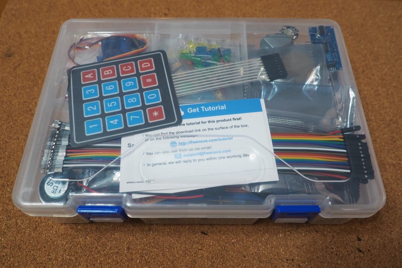 暇が無くて開けてなかったけど。平成の伊能忠敬さんの影響を受け、Arduinoの勉強でもしようと思って。中華モノですが、FREENOVEといえば今やメジャーです。サポートサイトやナレッジも充実している。