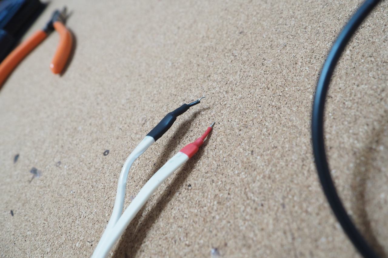 私は実験用にこんなケーブルいっぱい持ってます。ピン加工がしてあって、ホールにぶすっと刺せるタイプのケーブルね。