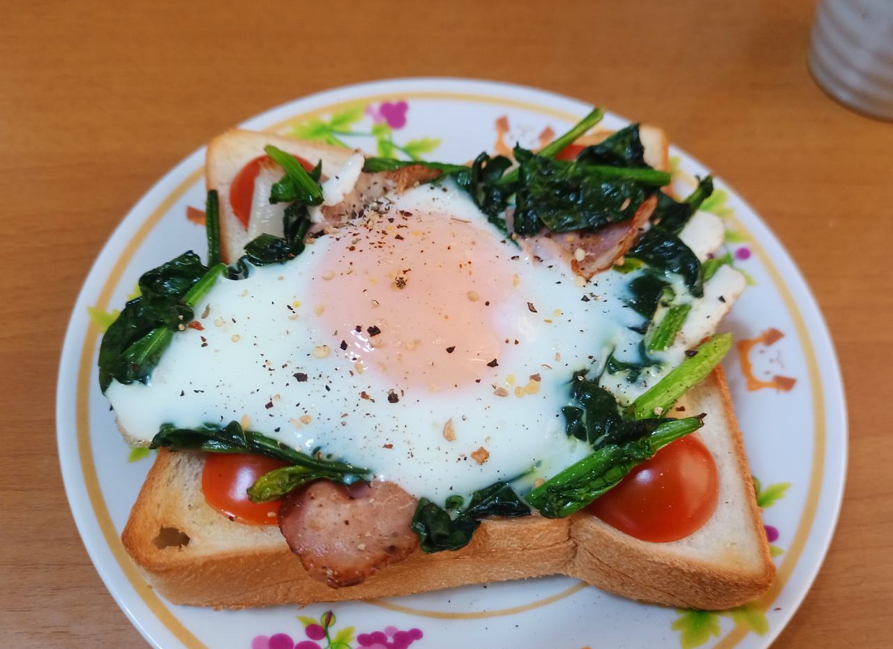 最初期は本当に、パズー・トーストだったんです。すなわち、バターが塗られて目玉焼きが乗ってるだけだった。それを嫁が美味しいと言って食べた。段々とエスカレートしてこんにちに至りました。子供用に考えると栄養バランスも気になります。