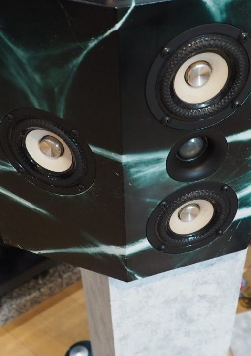 - フルレンジは市場でも特性の優れた3″口径のドライバを採用することにより、4″ (FE系)よりも分割振動が少なく位相特性に優れた系を実現した。さらにセンターchの高域はトゥイーターでカバーすることによって、マトリックススピーカーに最重要な位相/群遅延特性を大幅改善する。