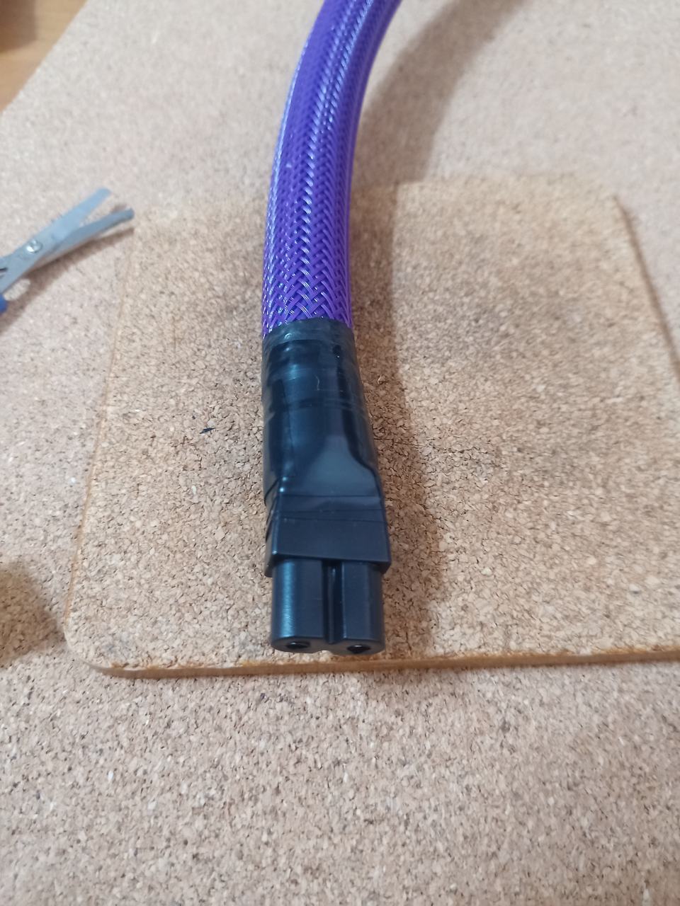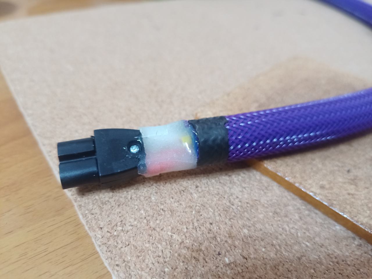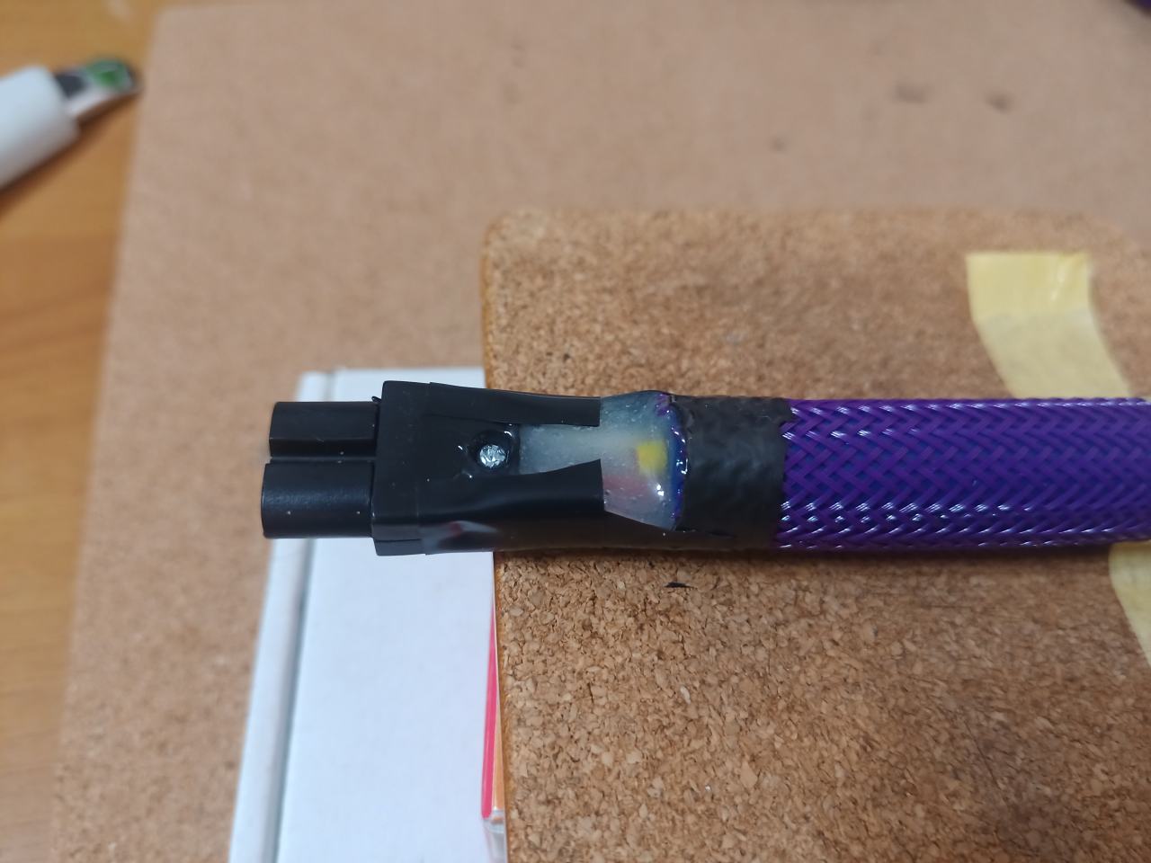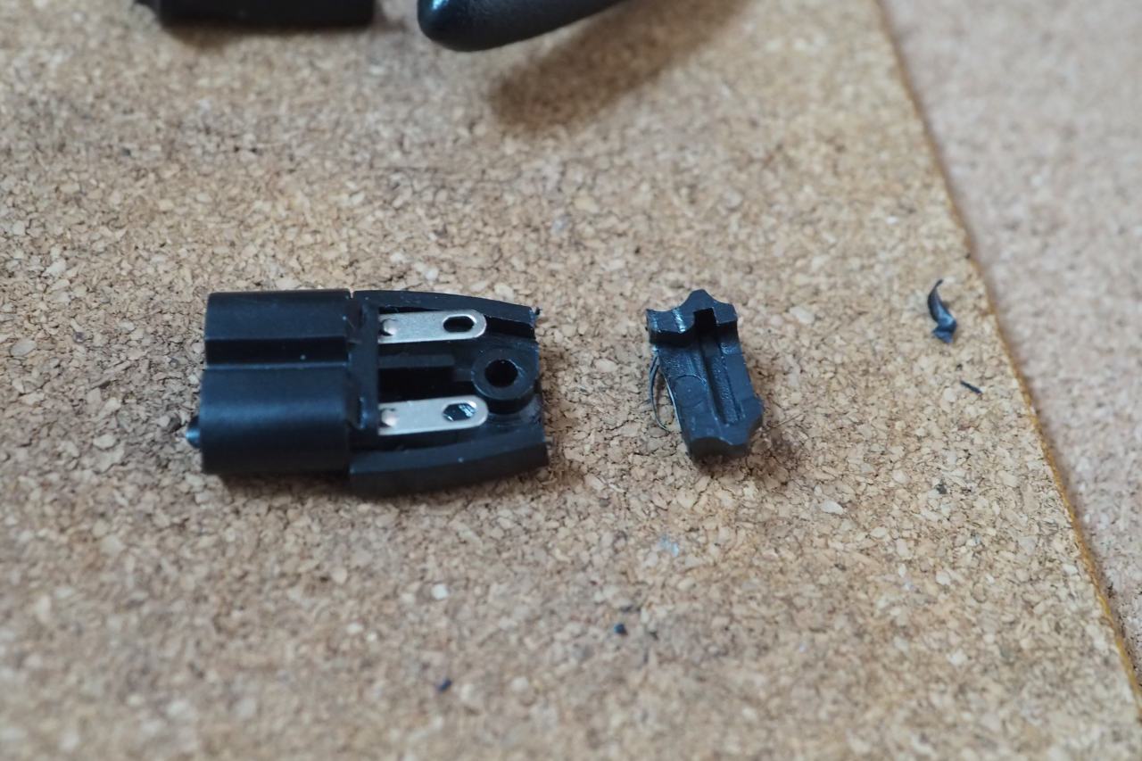 両側とも切除。かつ、太いケーブルの通り道をナイフで削って広げておきます。