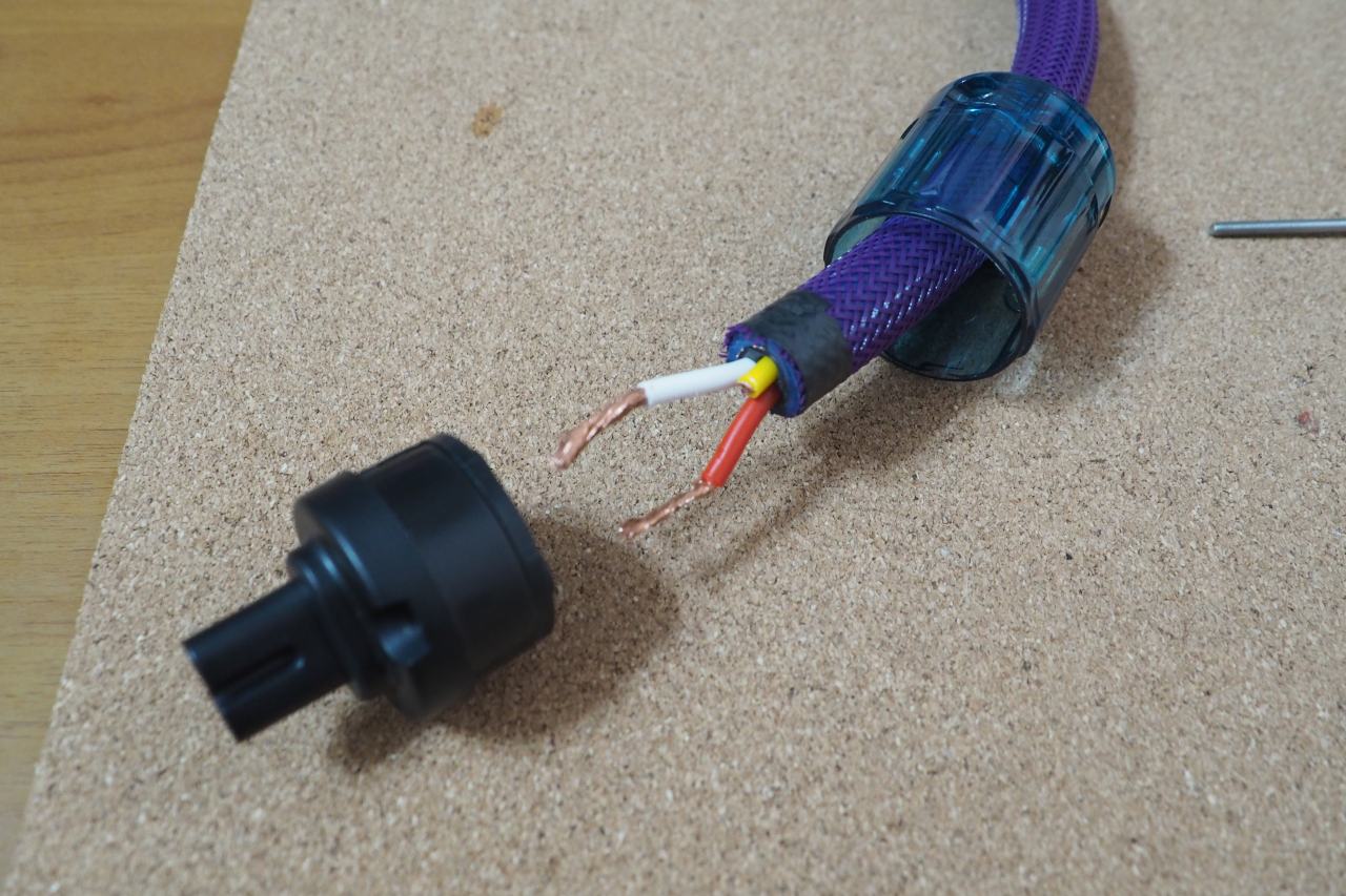 こちらもそのままではケーブルの芯線が通りませんので、加工して使えるようにします。
