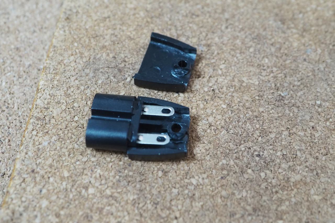 あまりにも巨大なメガネプラグが他のターミナルと干渉するため使えません。長らく塩漬けになっていたものですが、ようやく重い腰を上げて加工することに。