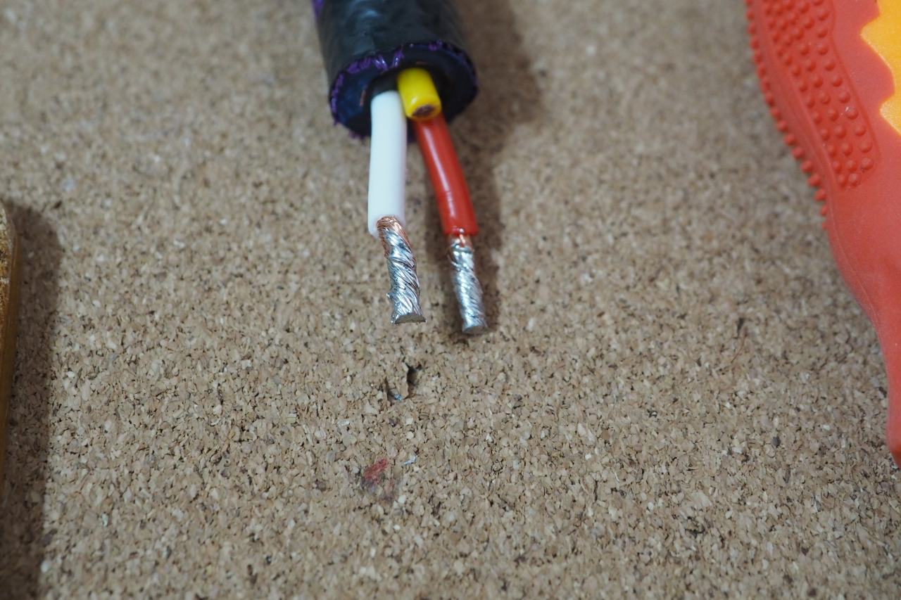 ケーブル末端には軽くハンダを乗せておく。