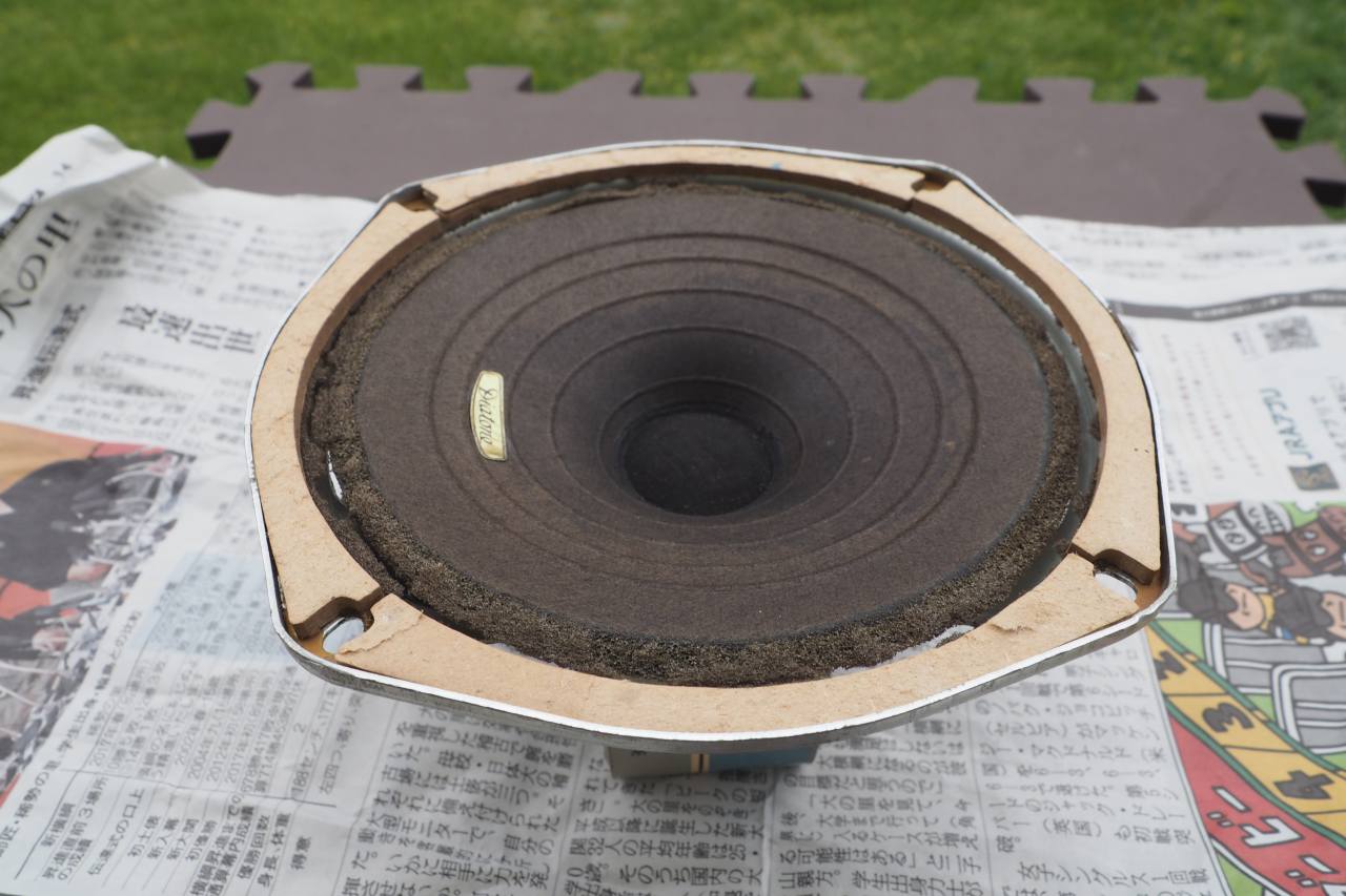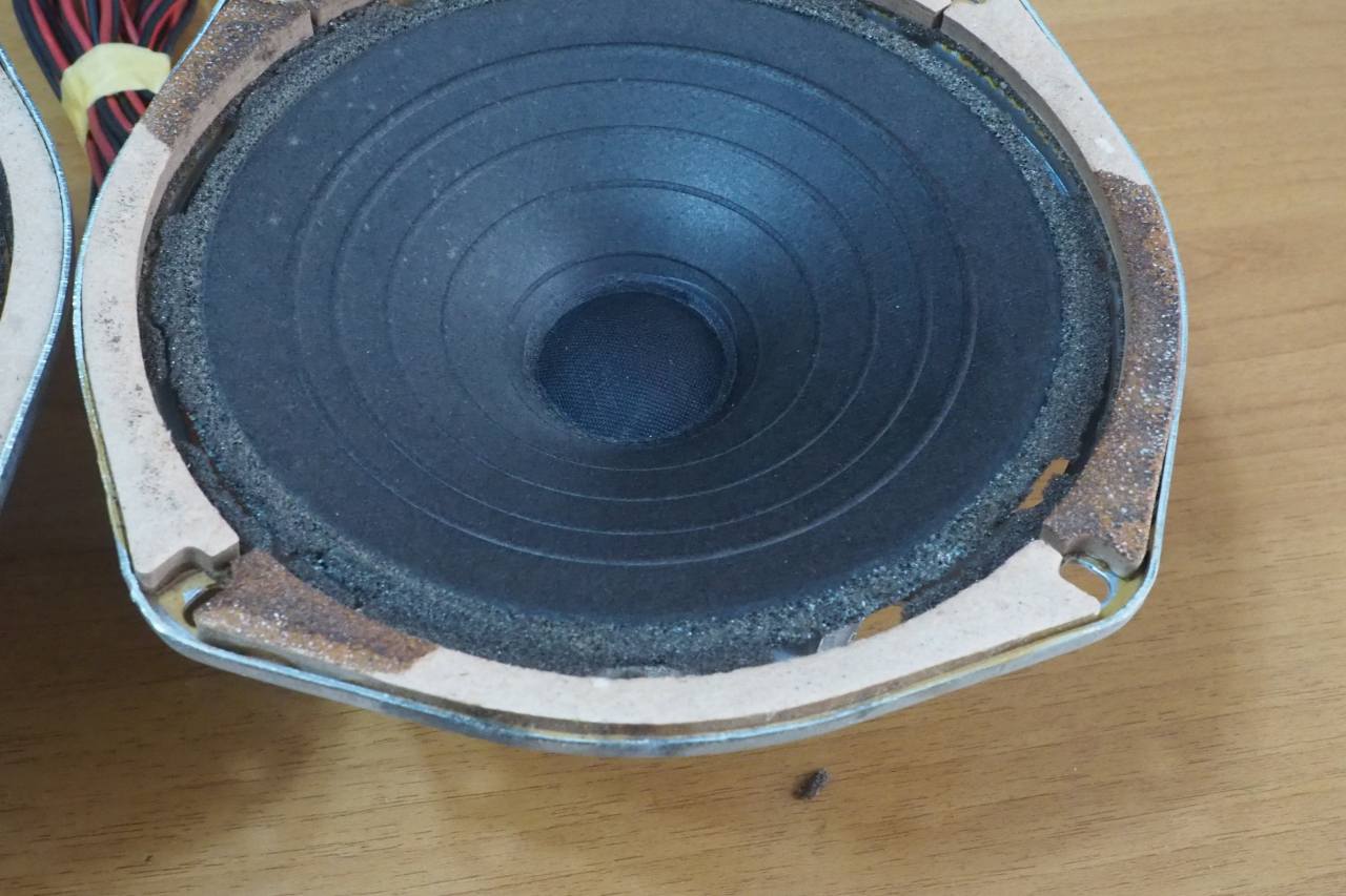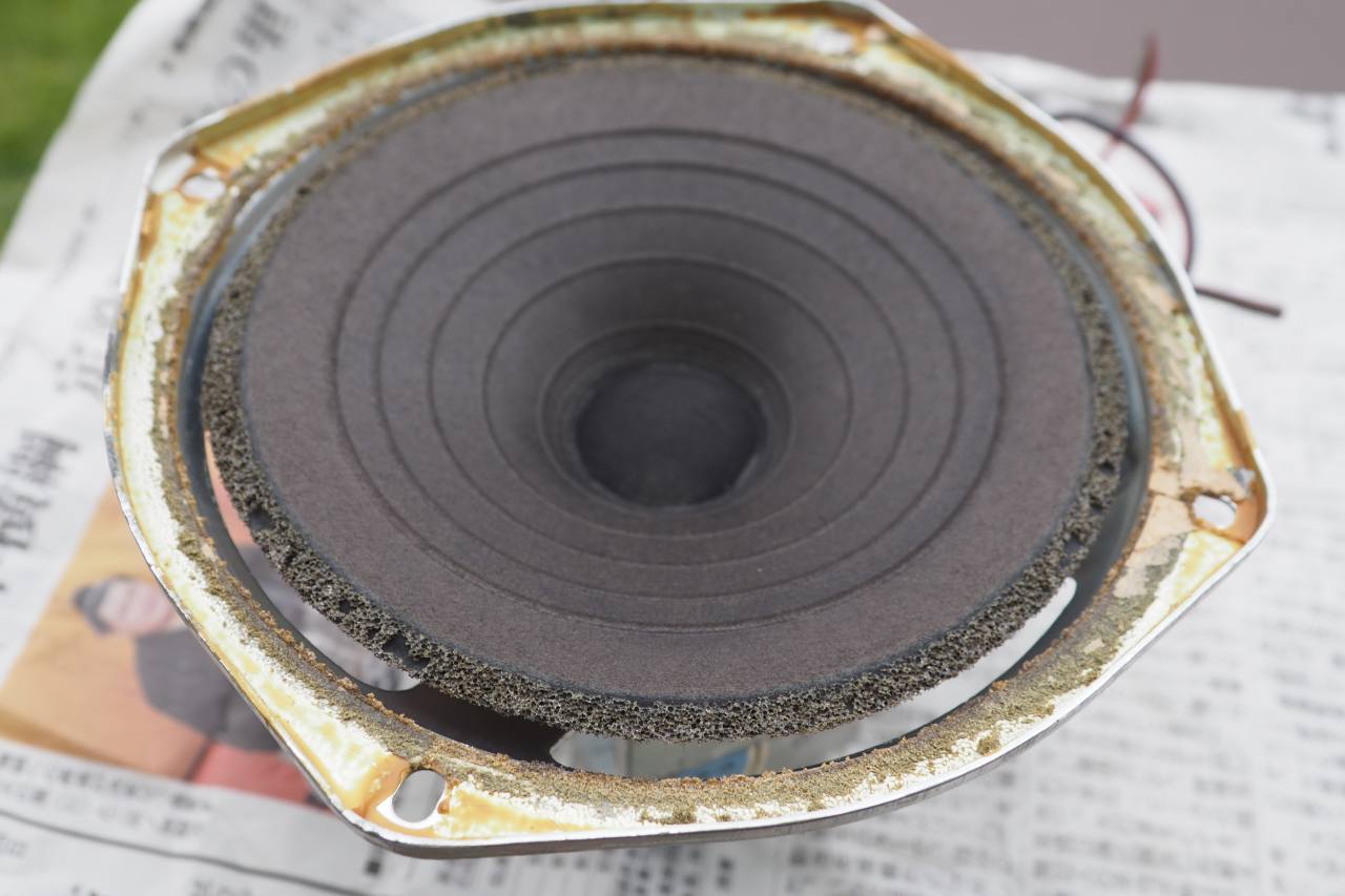 共通しているのがメンブレンは比較的ミントです。褪色はあっても振動板がヨレているものはありませんでした。ご覧の通り、サラウンドはどれも風化・崩落しています。ほぼ砂というか。