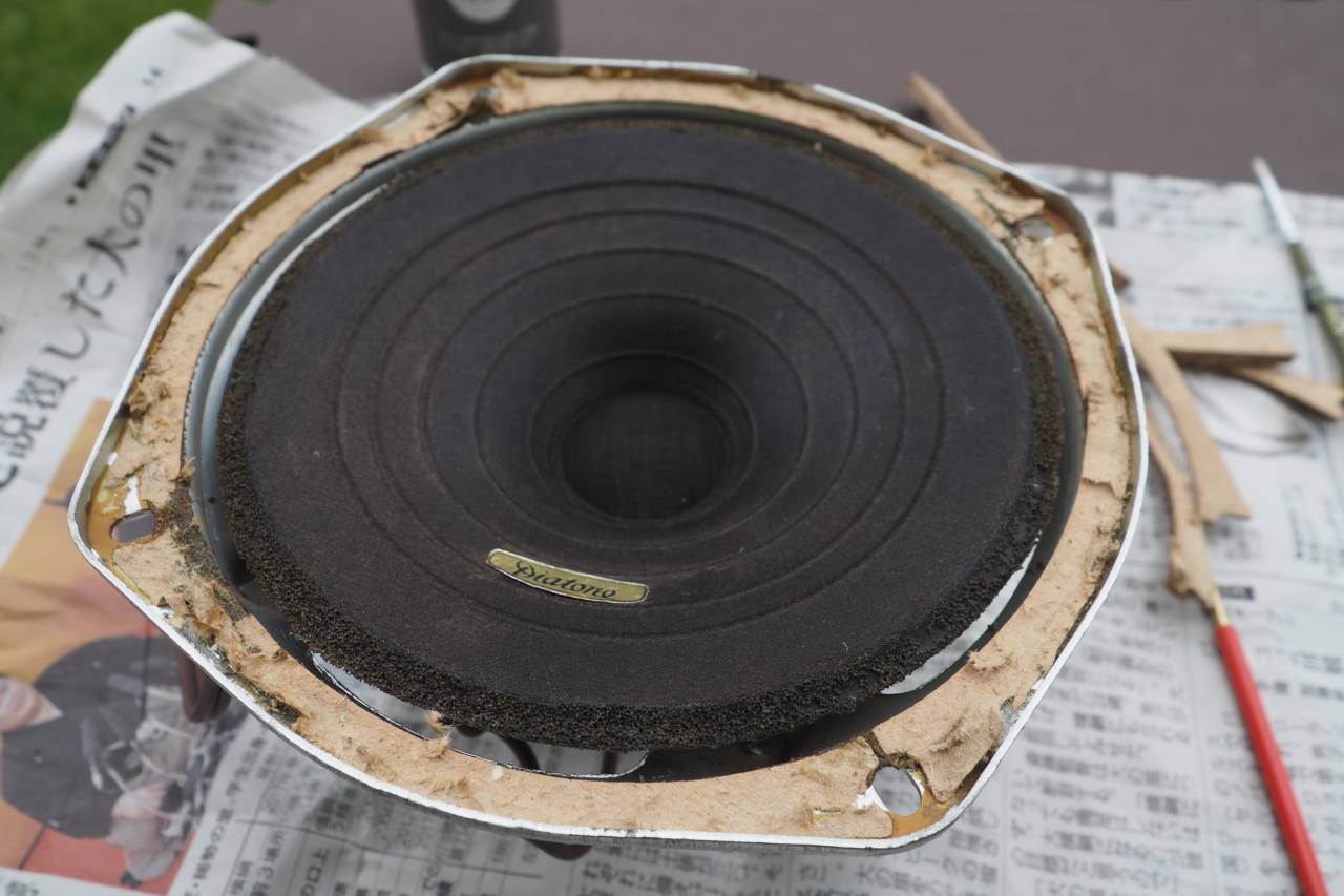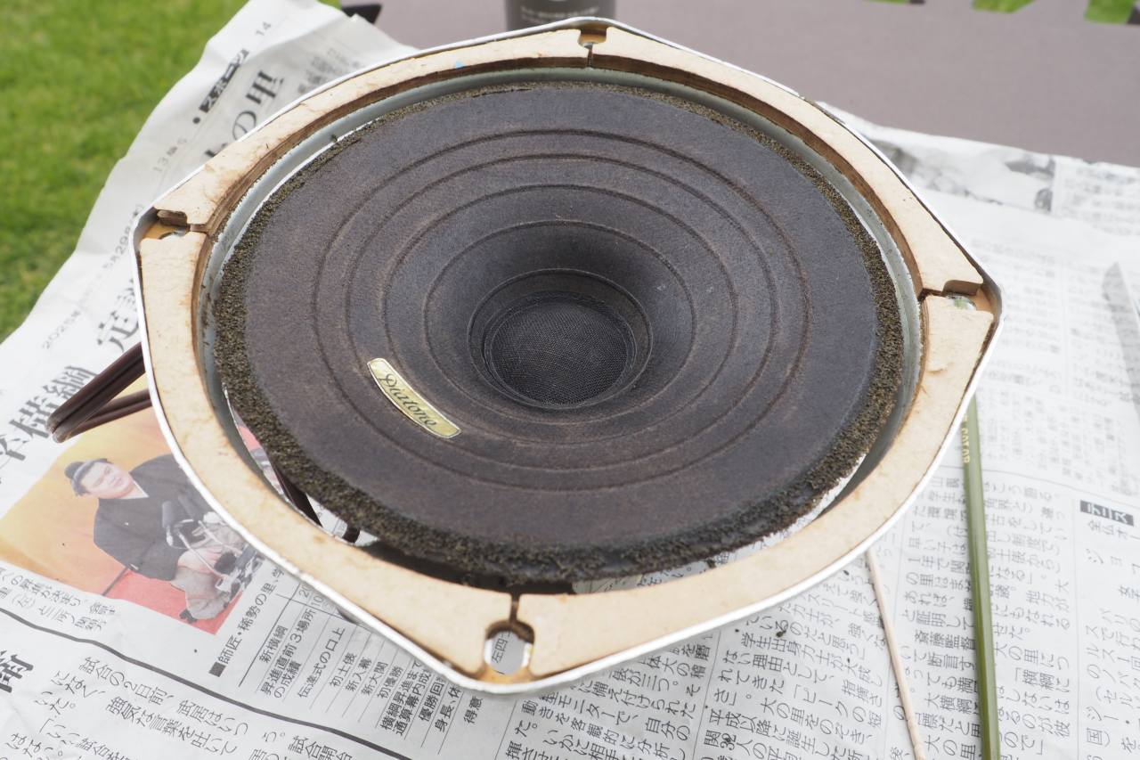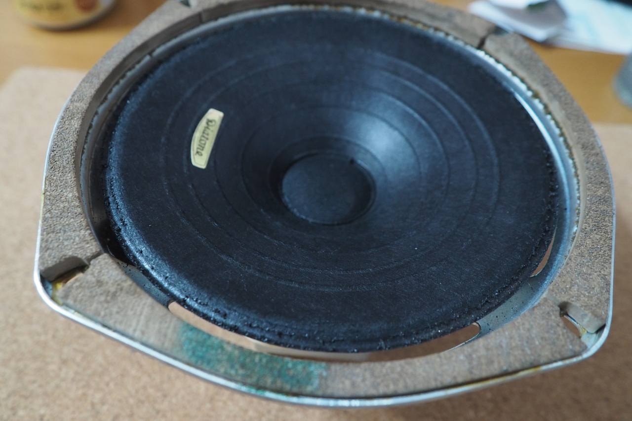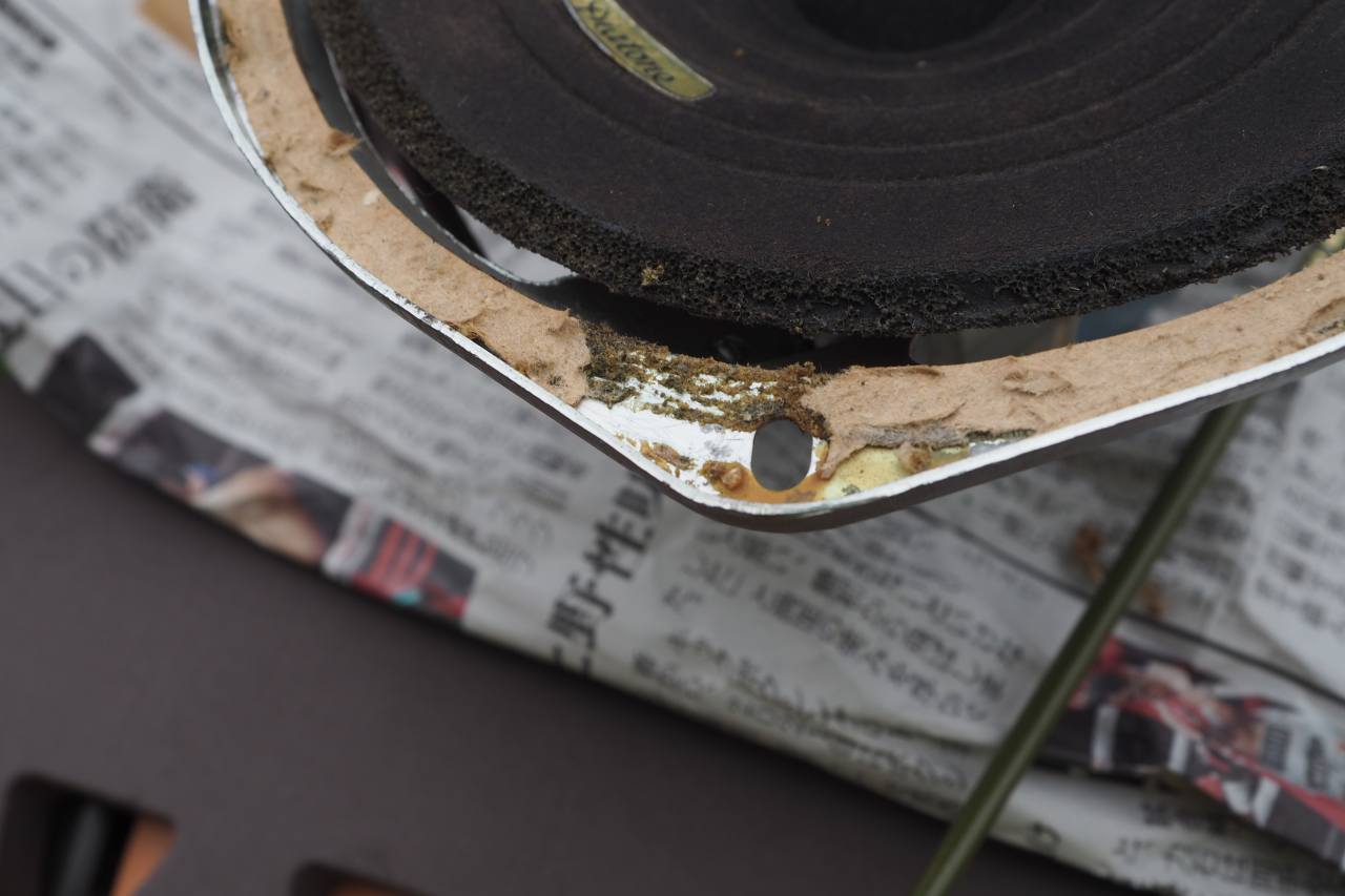 共通しているのがメンブレンは比較的ミントです。褪色はあっても振動板がヨレているものはありませんでした。ご覧の通り、サラウンドはどれも風化・崩落しています。ほぼ砂というか。