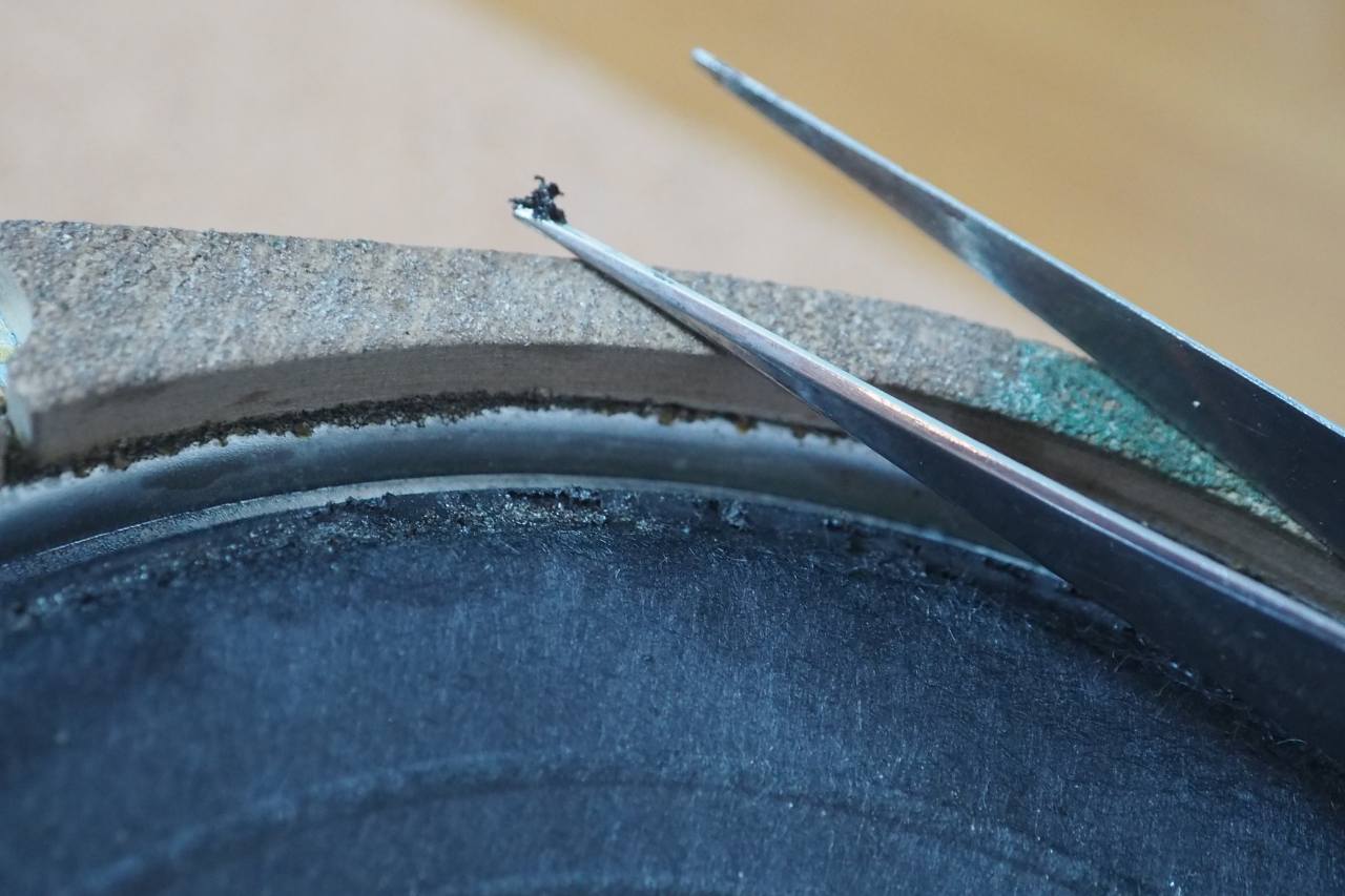 もう1本のガスケット。こちらはマアマア剥がせた。でも接着剤は丸残りです。
