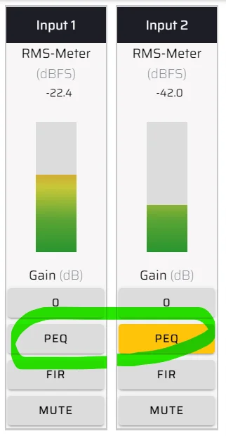 RIAAのCoefsはINPUT段のPEQセクションにセットします。