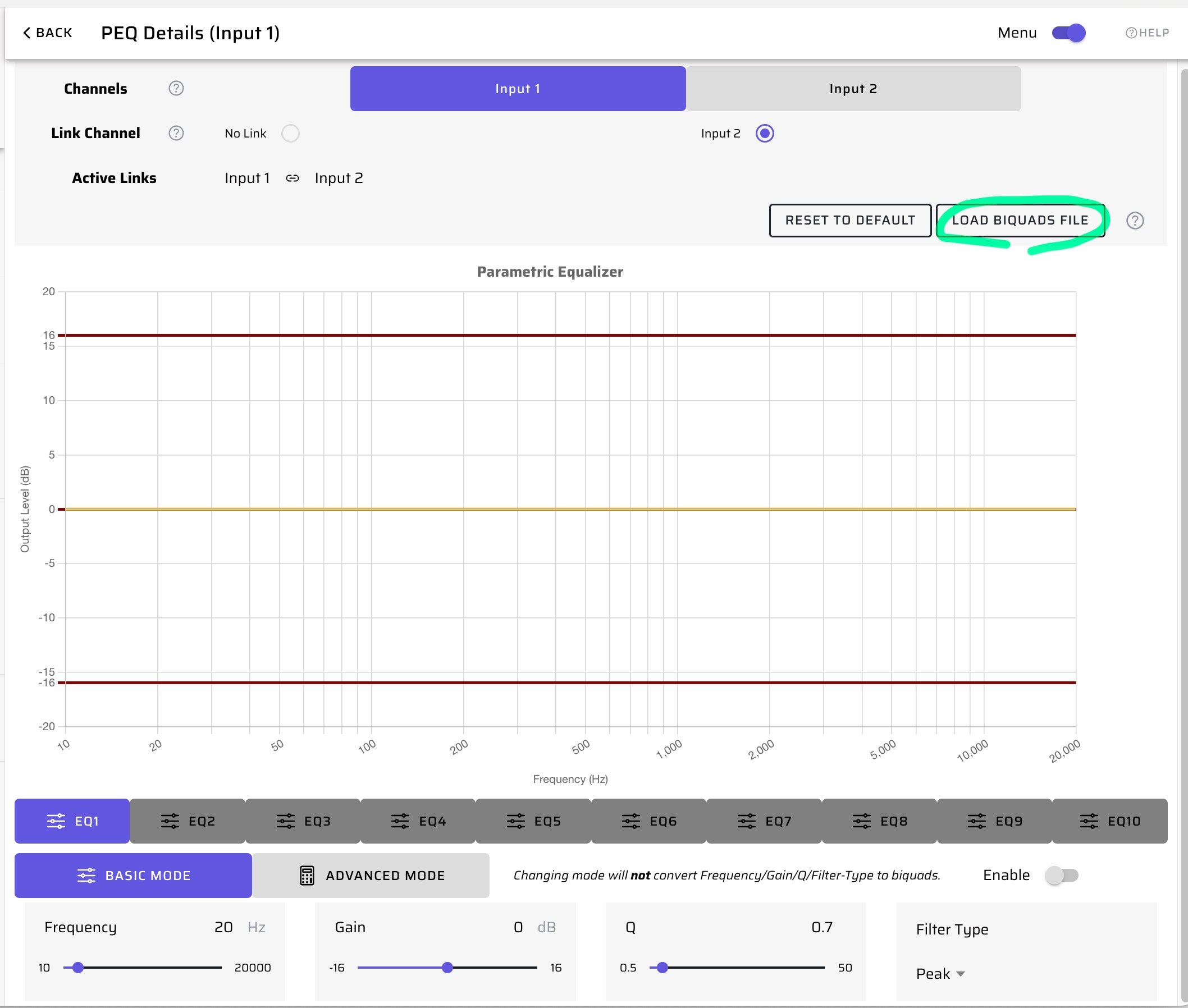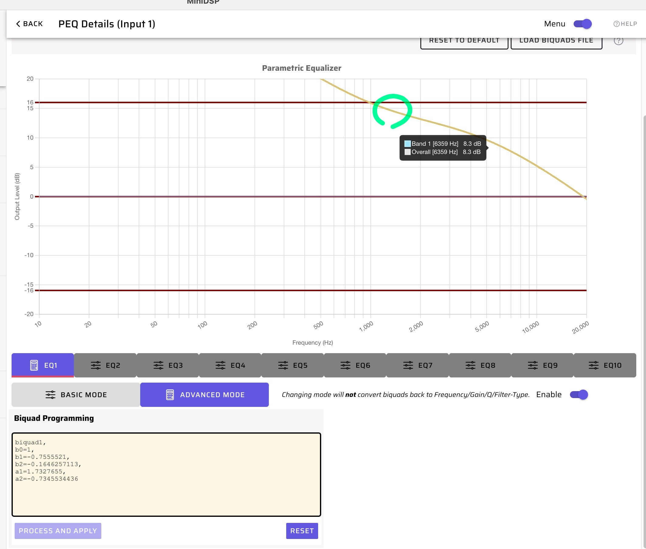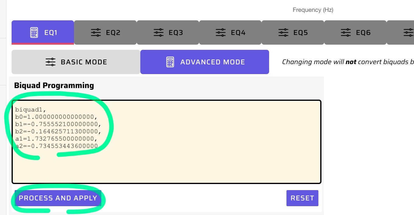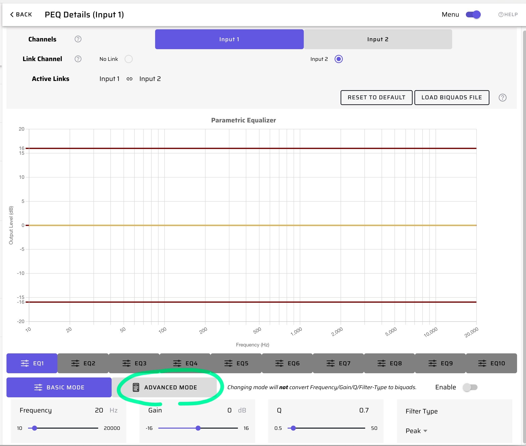 Biquad-coefsは[ADVANCED MODE]からセットアップします。