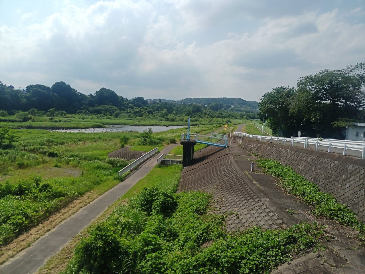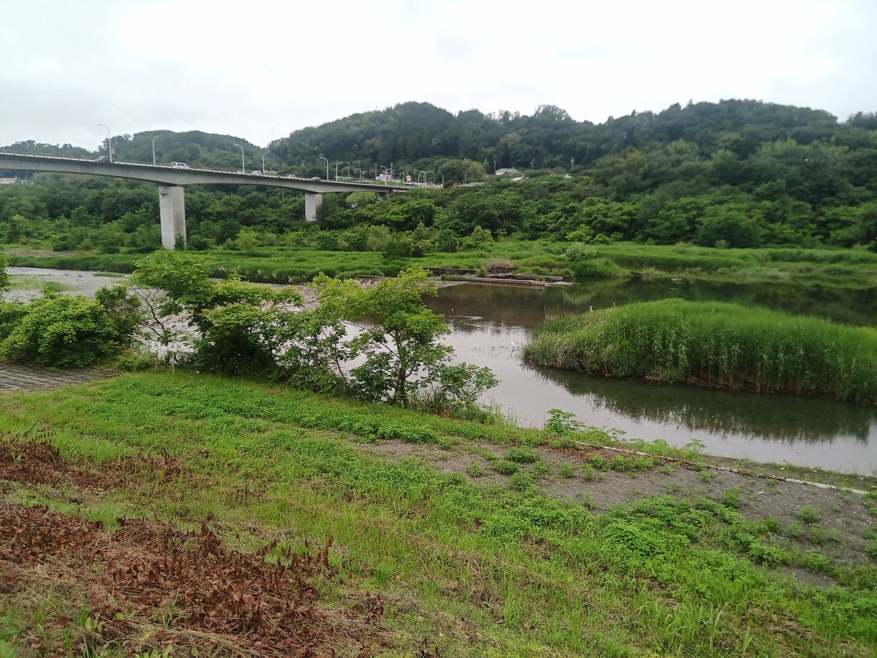 ガスってるから暑く見えないですが。これはあまりの猛暑でガスが立ち上がってしらっちゃけているだけ。河原なら風が吹き抜けるから涼しげ、というのも幻想。日陰なし、草木から立ち上がる瘴気の如き猛烈な暑さと湿気。市街路の方がマシなくらい。気が遠くなりそう。