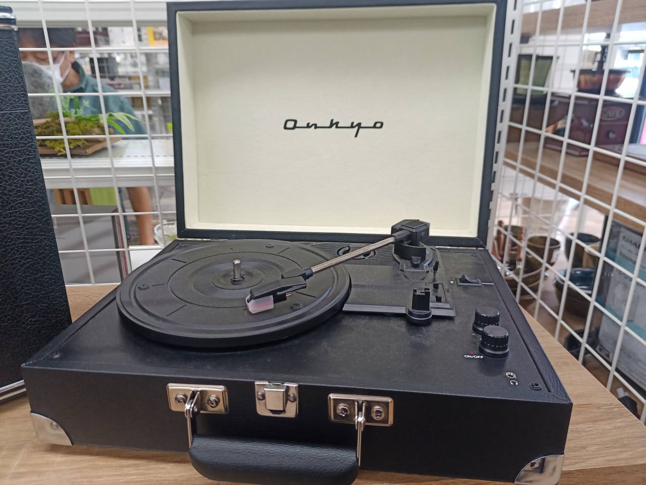 判ります?、これ。「O n k y o 」の文字が見えます。ロゴを切り売りした、身売りに見えてきますね。外観がおしゃなのは認めますが大切なLPを絶対にこれでは掛けたくない。