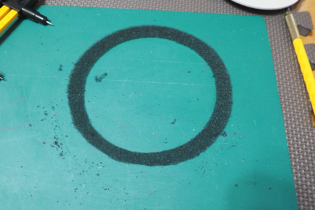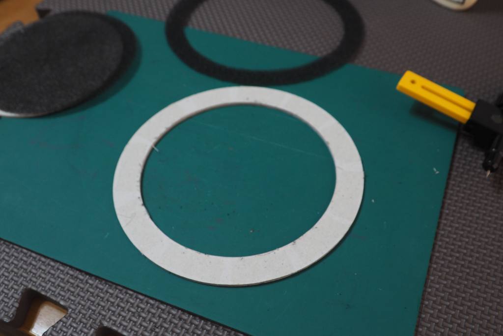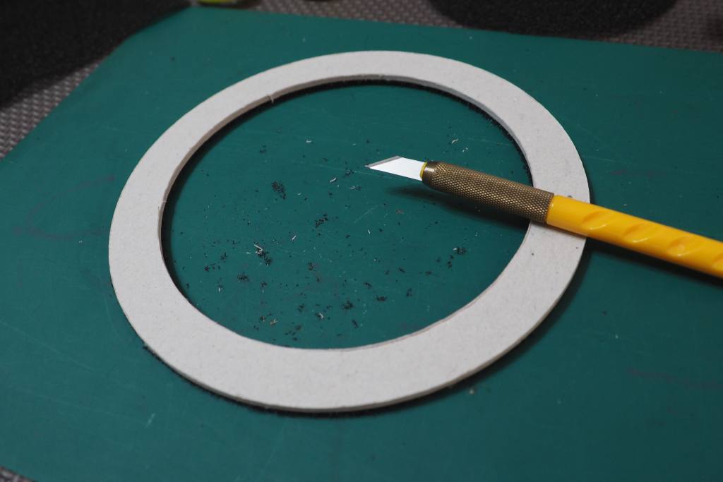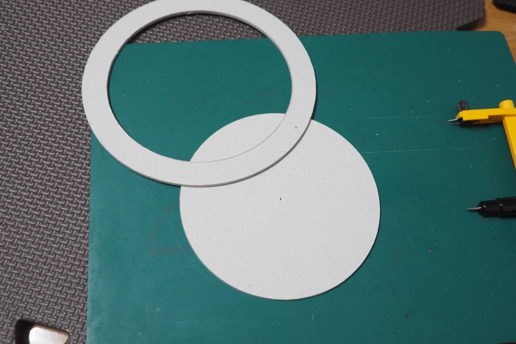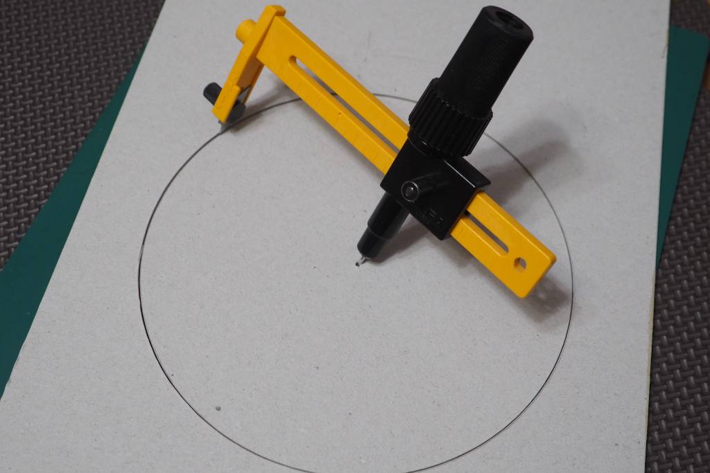 内周はこんな感じにしてカッターコンパスで切ってみた。