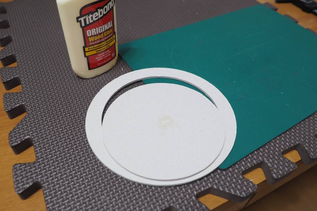 カッティングの際にセンター穴が拡がっちゃったんで、タイトボンドで埋めて小さくします。気休めですが・・・。