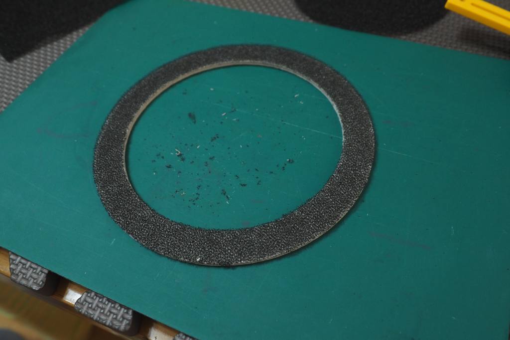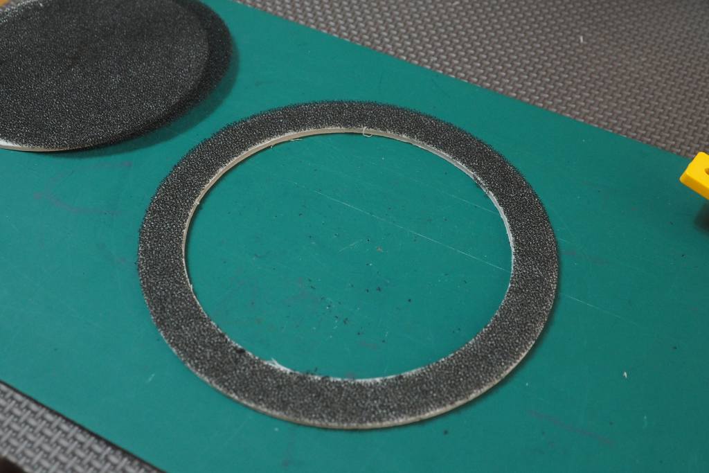 勿論ラウドスピーカー用に売られているものではなく、エアーフィルター用の部材。これを使ってサラウンドを作っていきます。