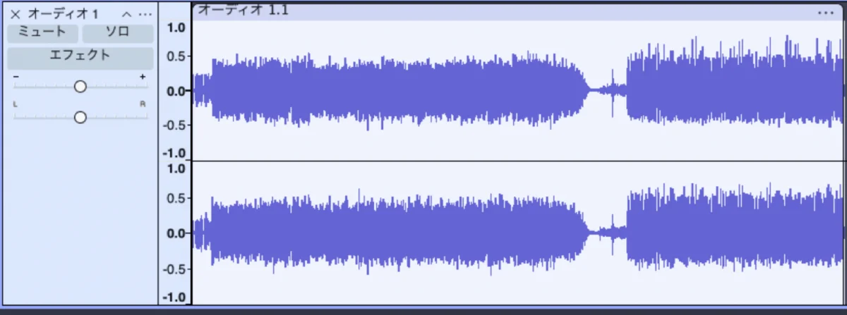 どう見ても超低空飛行でゲインが足りていません。ピークホールドを確認する限り、ざっと20dBは不足しているようです。仕方がないのでとりあえずAudacityを使い-2.0dB程度でノーマライズしてみます。