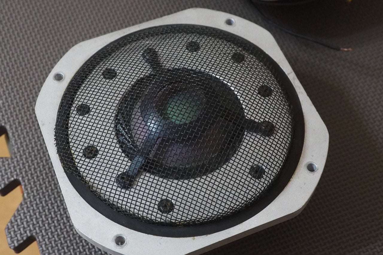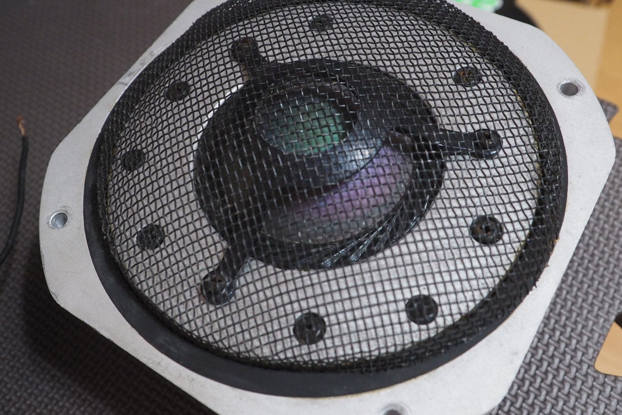 このドライバが108,000円のラウドスピーカーに採用されていたものとは到底思えません。DIATONE辺りもそうでしたが、現物を目の前にするとオーラに感嘆します。実測質量4.4kg、大口径ウーファー並みに重い。製品のほとんどのコストはこのミッドに投入・集約された?と言っても過言で無いのでは。