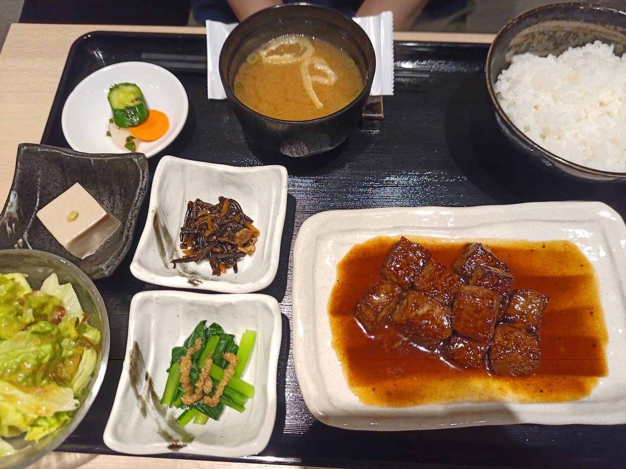 こちらは家内の頼んだ「和風サイコロステーキ定食」