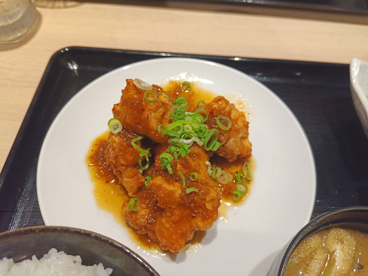 こちらは私が頼んだ「鶏の唐揚げ(油淋鶏だれ)定食」