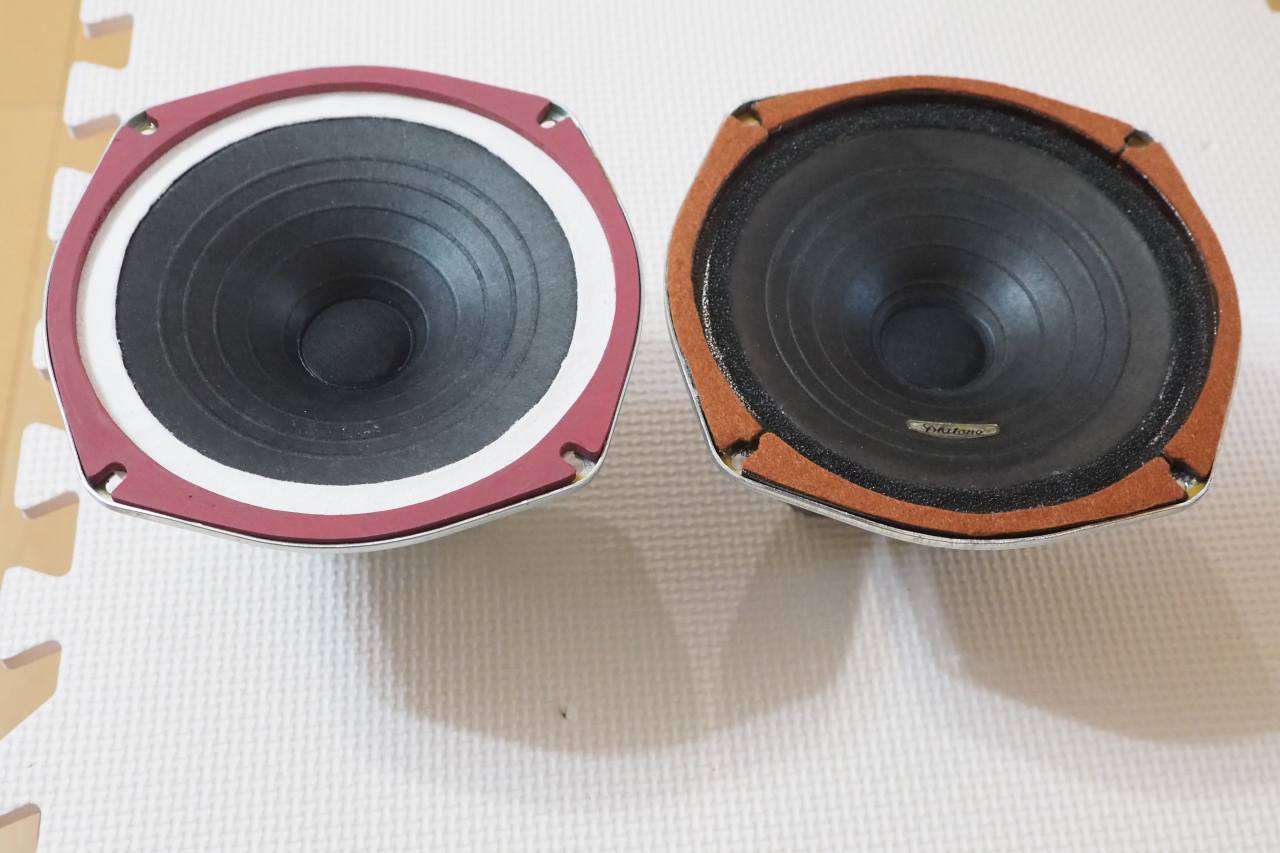 すぐに気づくのは高域の違い。魔改造は高域がやや落ち込んで大人しい感じになっています。これは恐らくスパイダーの違いに拠るものだと思います。オリジナルでは固い布製スパイダーで制動できていたため、メンブレンが制動されて高域を稼げていた。それが、スパイダーのフリクションが減少したために相対的に高域が落ち窪んだのだと思います。判りやすく言えばサスペンションがウーファー寄りになった。