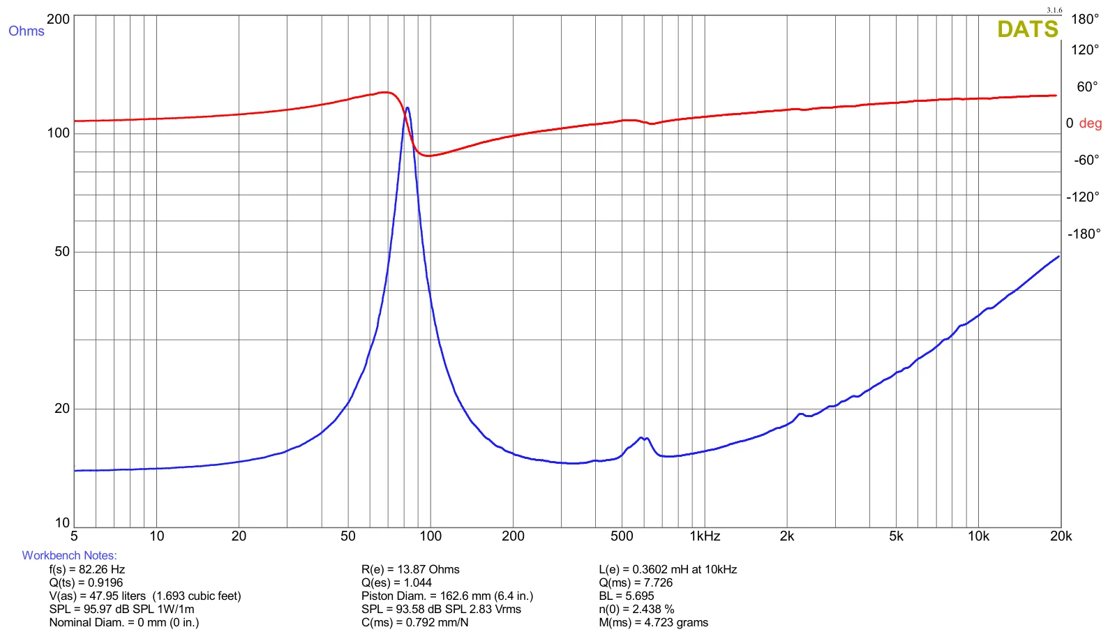 位相特性を見る限り、4kHzから上はドバっと位相が乱れ、ロクハンのフルレンジではそのへんが限界かなと。