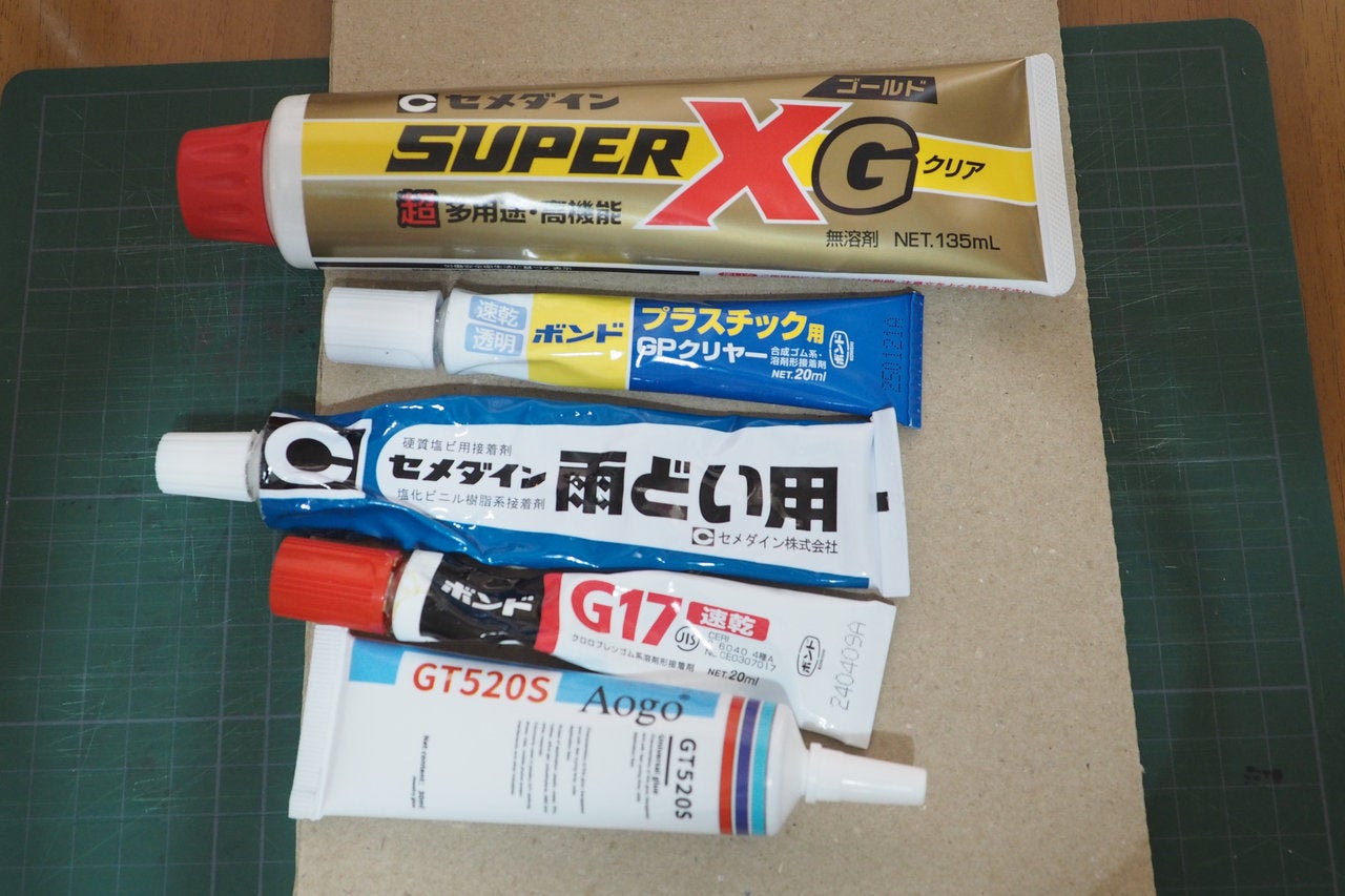 せっかく購入した「Aogo GT520Sは硬化後のコンプライアンスが低すぎ」「SuperXGは硬化スピードが早すぎて作業性に余裕なし」でどちらも却下。驚いたことに今回作業で生き残ったのは、百均で買ったプラスチック用GPクリヤーでした。いつでもこれが最高というわけではありません、接着剤は作業+対象により最適解が大きく変わるのです。