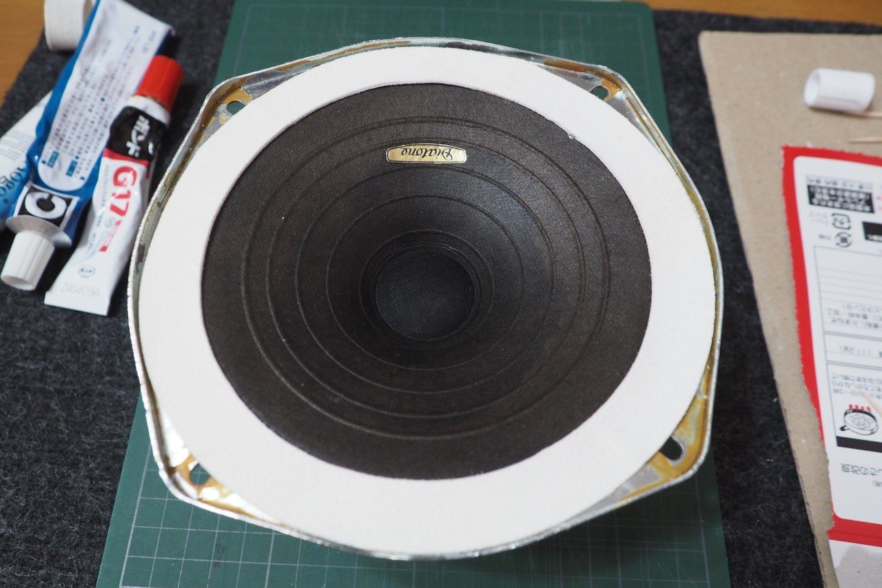 もともとこの魔改造はスパイダーがスプリングになって輻射面積極小となったため、メンブレン前面への干渉は少なくできたと思います。ですが、バスケット背面での反射はむしろ目立ってしまうため少しでも、との思いで貼ってみました。