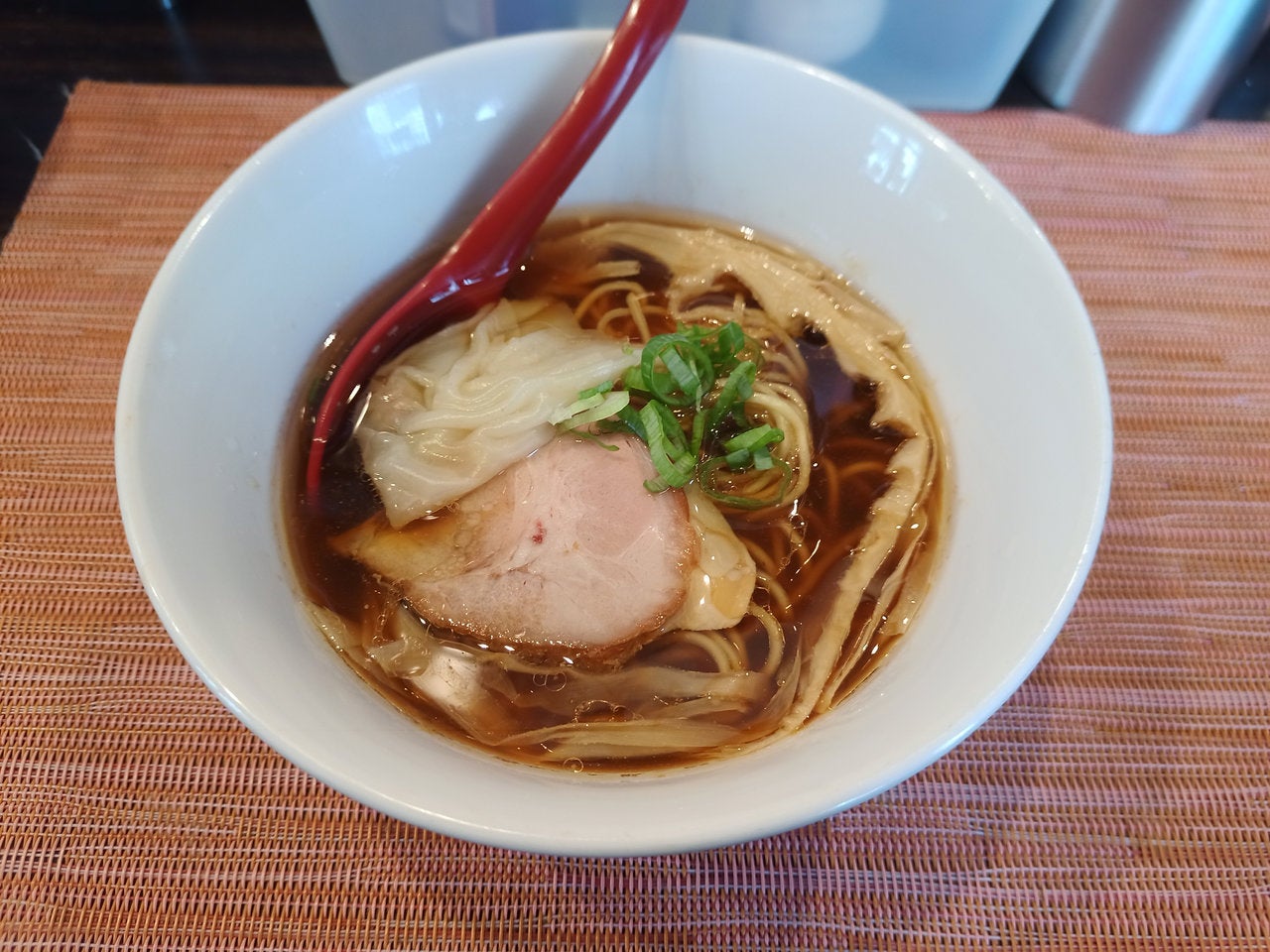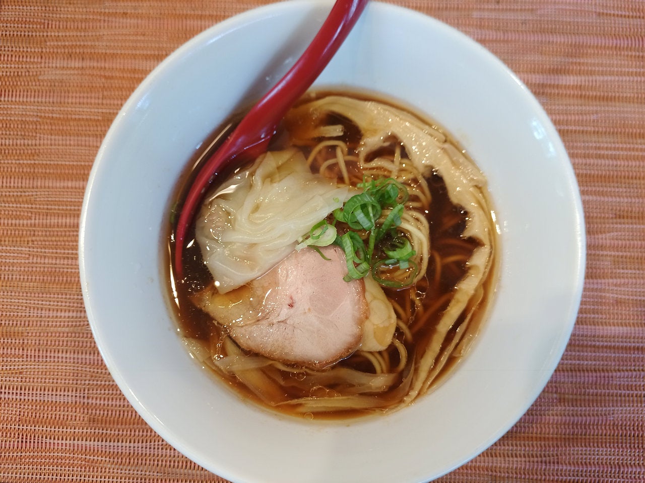 具材も見事。穂先メンマ、数日かけてぐずぐずに戻すのではなく、むしろ早めに引き上げて食感を残すタイプ。トロトロとシャクシャクの中間を狙う。チャーシューは焼き豚と鶏のダブル。どちらもスープを汚さないタイプで風味が素晴らしい。九条ネギ、そして、珍しい雲呑。ワンタンメンではない。なぜかワンタンが1つだけ入っているが、これは味というより雲呑の食感を楽しませて麺とのギャップでアクセントをつける目的と思われる。確かにちょっと楽しい。