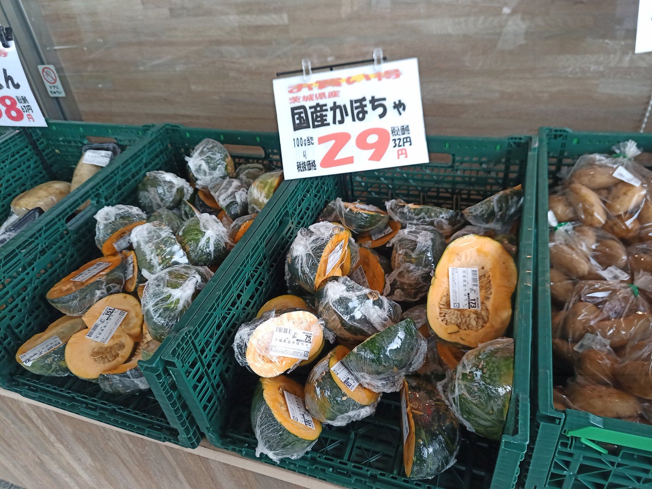 かぼちゃが100g 29円相当。70円くらいのカットを買いました。