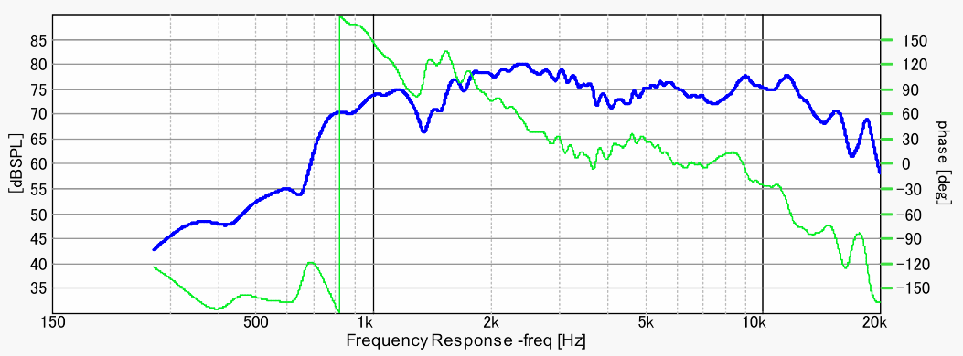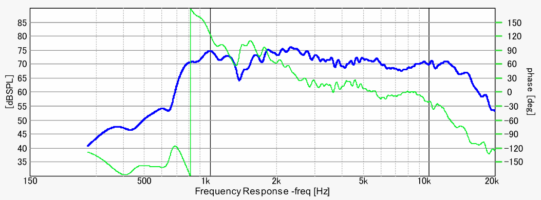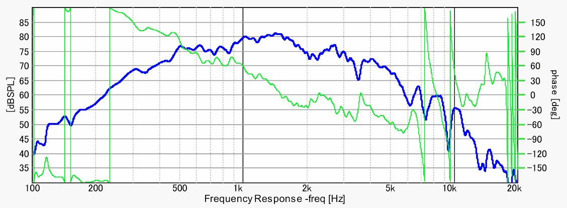予想外に良い特性です。この大口径にして、2kHzまでは問題なく使えそう。