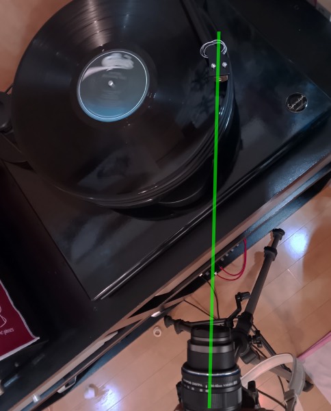 = レコード音溝の接線方向へカメラを向けます。不安な場合は糸などで方角を測れば良いと思います。