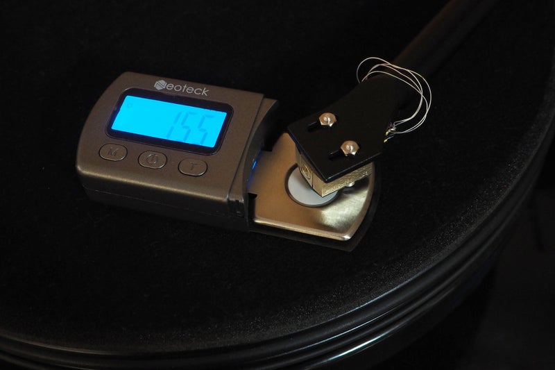 ノッティンガムのアームは針圧の目盛りは付いていませんから、適切な針圧計を使って測ります。