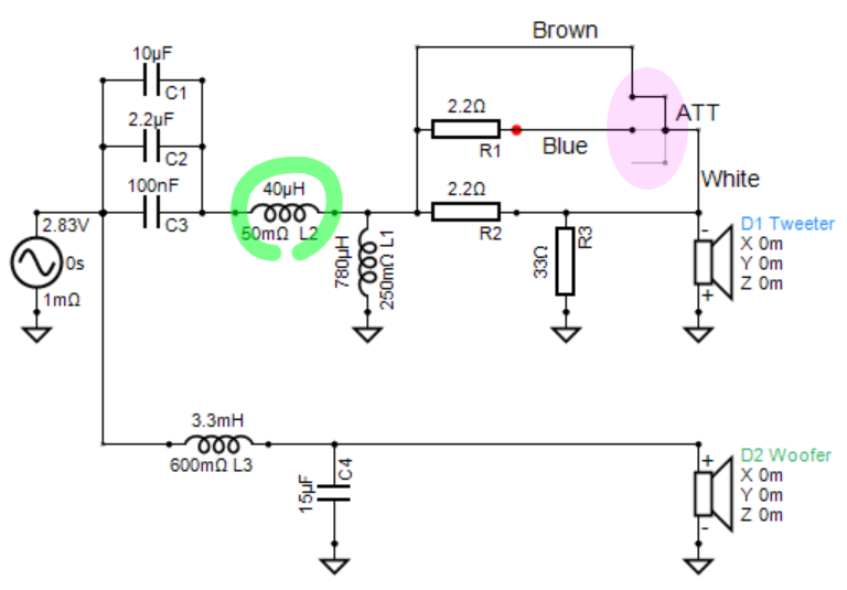 0.4mH(実測では0.6mHほどありました)の目的ですが、トゥイーターの高域補正でした。