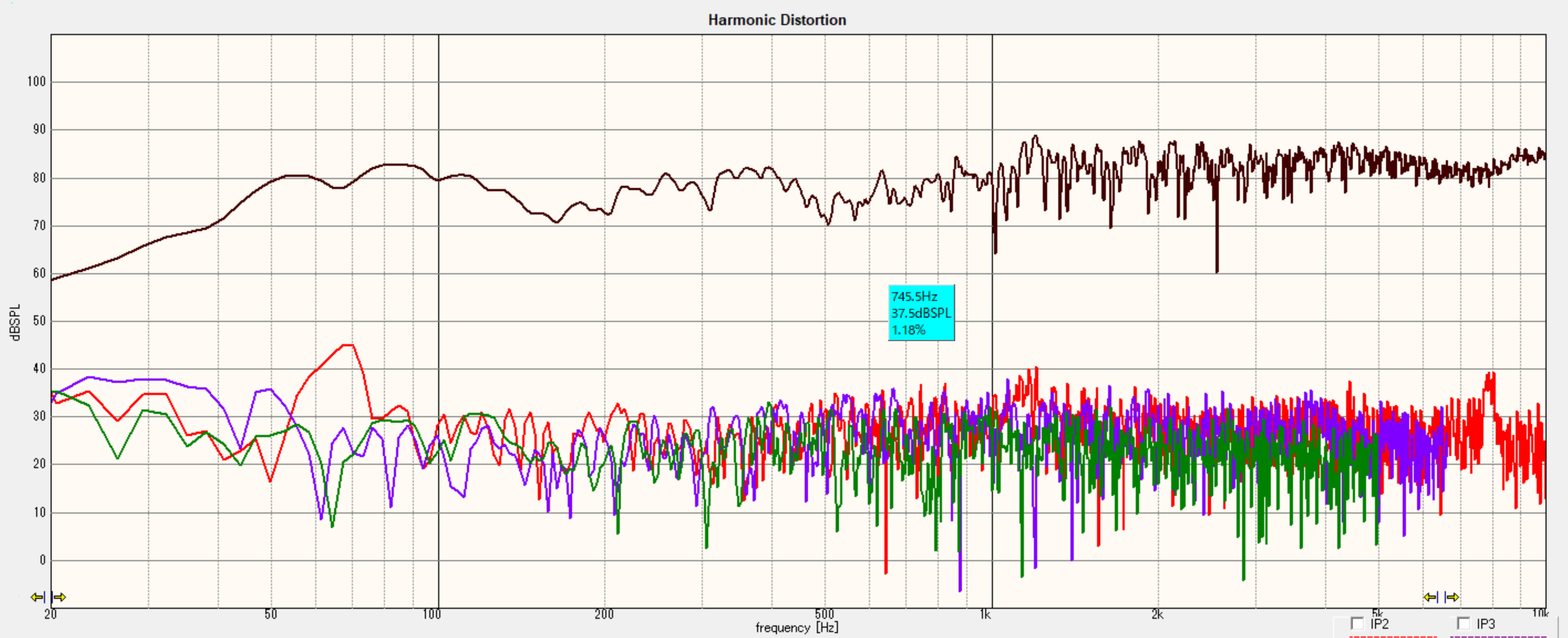 ただ、この後に登場するYAMAHA NS-1000Mミッドに比べると2〜4倍は歪みが多めになっています。