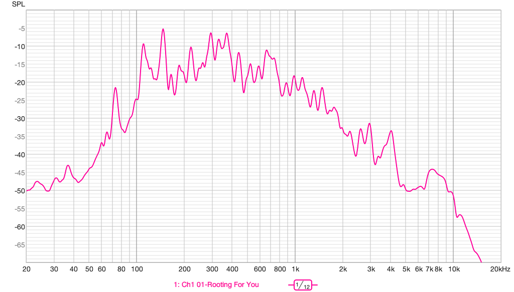 この曲は一転、グッと重低音のレベルが上がってきていて、30Hzまではフラットに出ています。高域も伸びてきている。当然、スケールの大きな巨大感のある再生音になります。