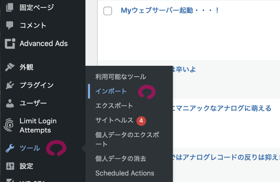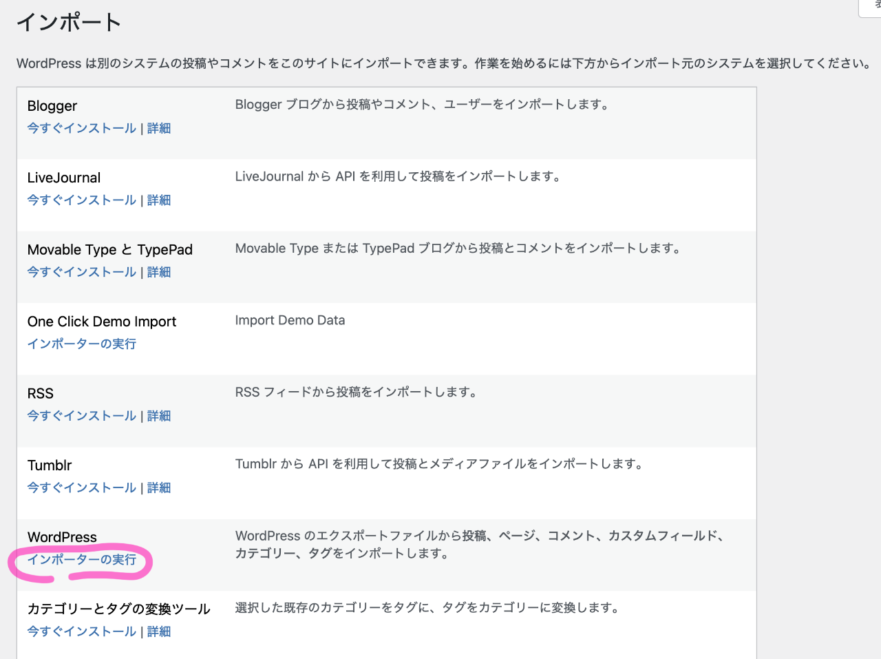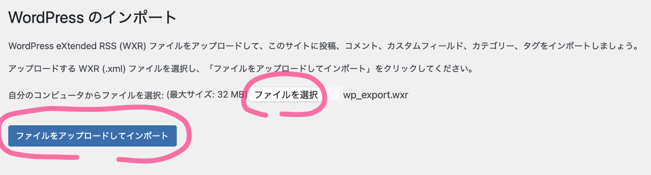 前記<download_pages>からWordPressにインポートできるwxrファイルへ変換。→”wp_export.wxr”