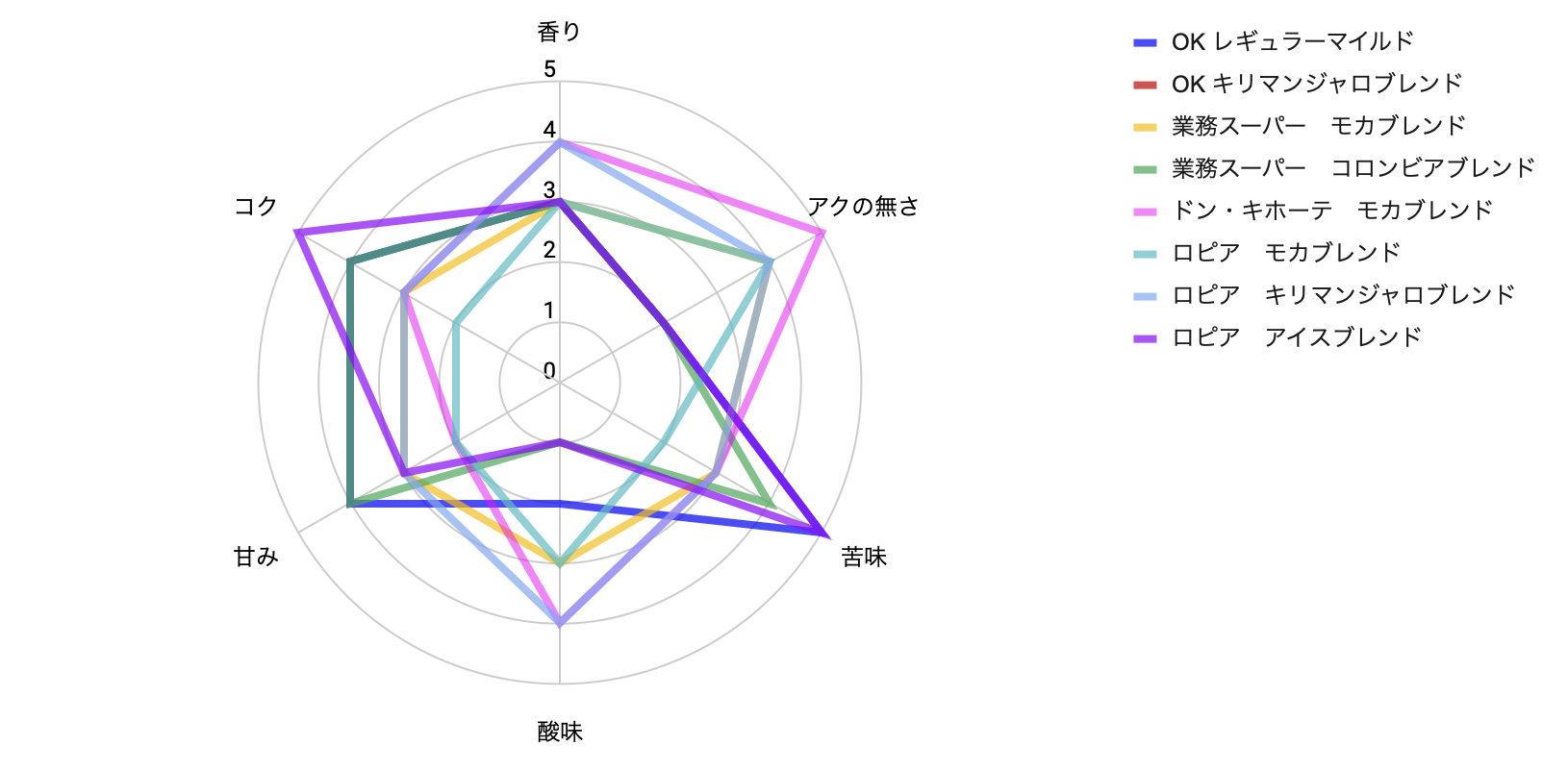 今回は過去に飲んだスーパー・コーヒー豆をチャート化してみました。