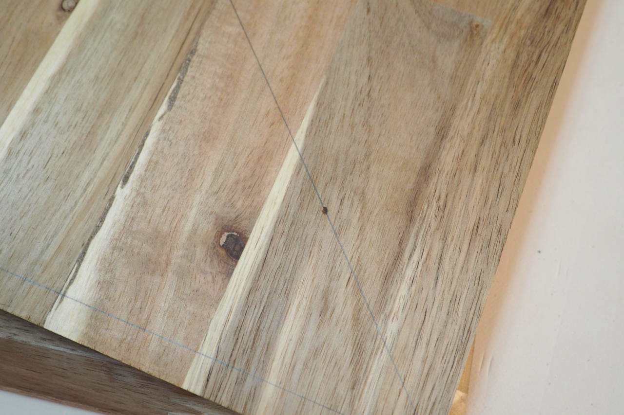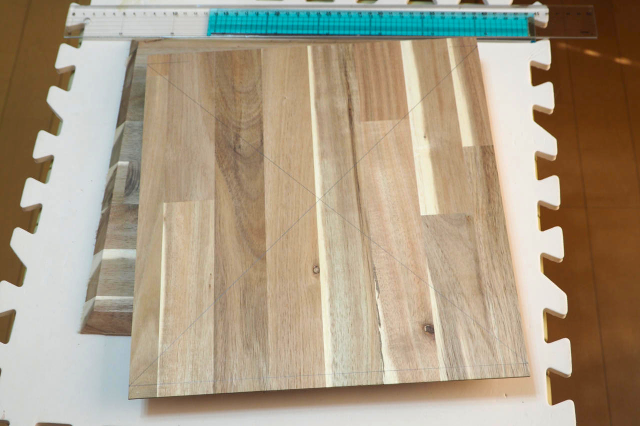エッジ斜めカットは終わりましたので。センター出しの罫書きをします。