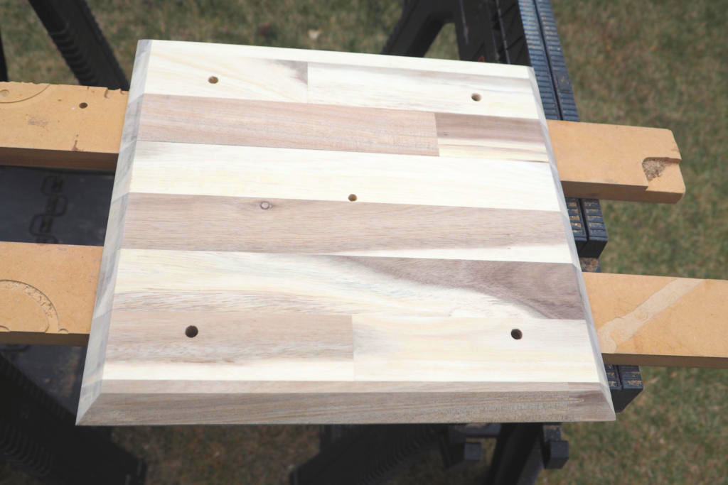 準備ができたら戸外へ持ち出してトリマーでフランジ外周をザグっていきます。