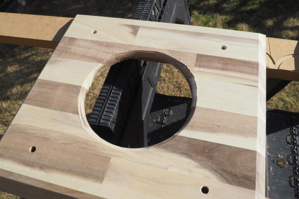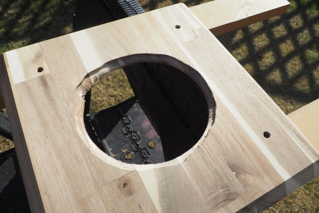 DS-25Bのサブバッフルです。前回、穴あけの加工で失敗しましたが傷口は広がっています。さらなる酷い失敗をしました。