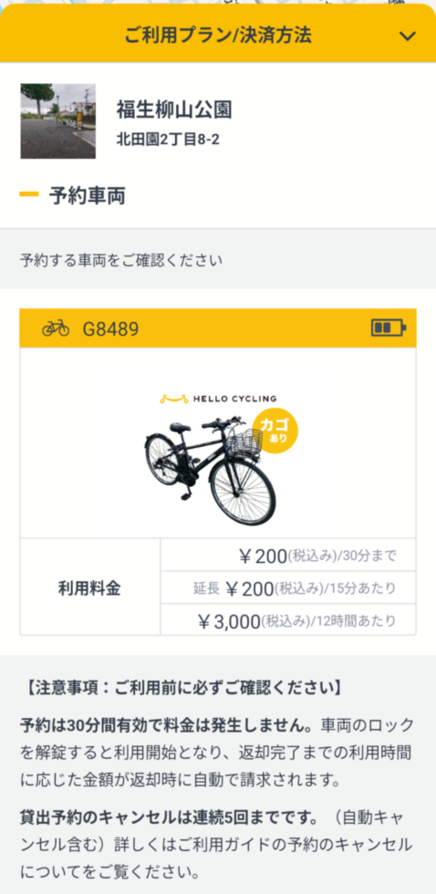 いや、こんな事もあろうかと(どんな事だ)実は”HELLO CYCLING”(レンタルサイクルアプリ)をインストール済みで、会員登録も済ませてあるんですね。