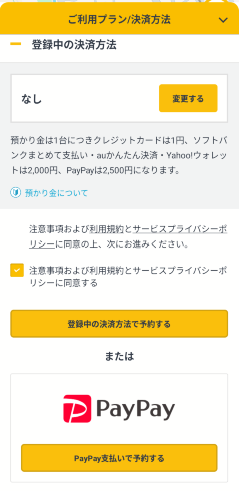 PayPayを選んだ場合は予約金として(保証金のようなものです)2500円を初回請求されます。私は今後の利用も見込まれるのでPayPayにしました。