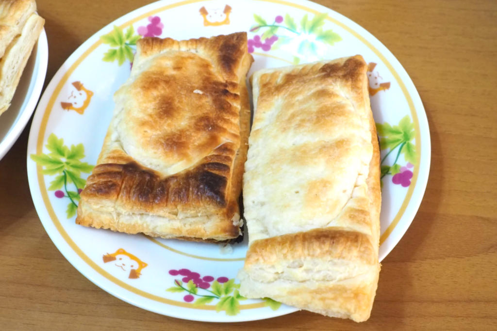生地は私がこねても良かったのですが、パイ生地(焼く前)なるものを売っているのでそれを。