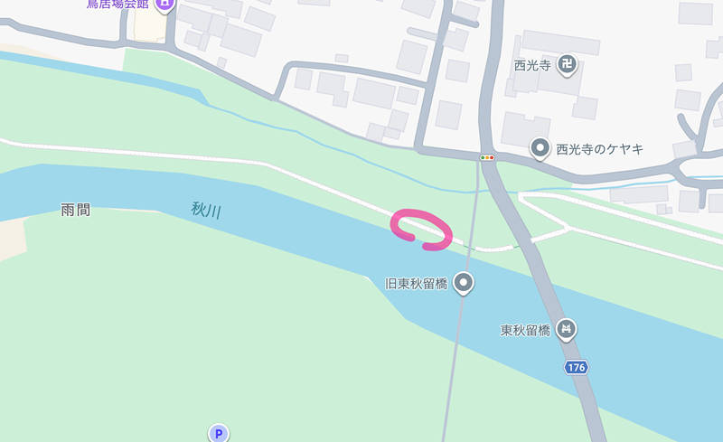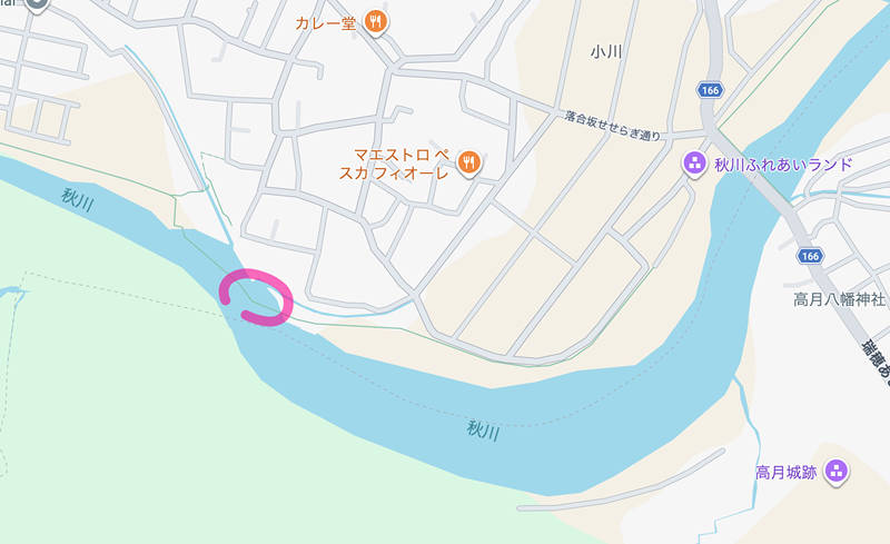 GoogleMapsは「川の上」を道路が通っています(笑)
