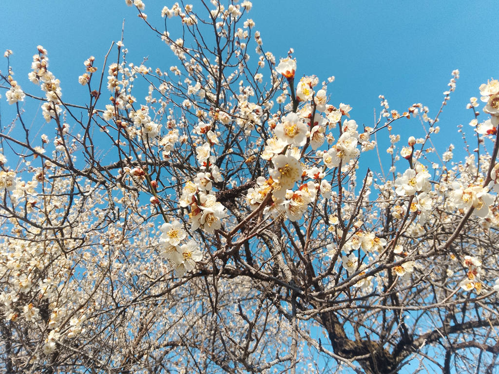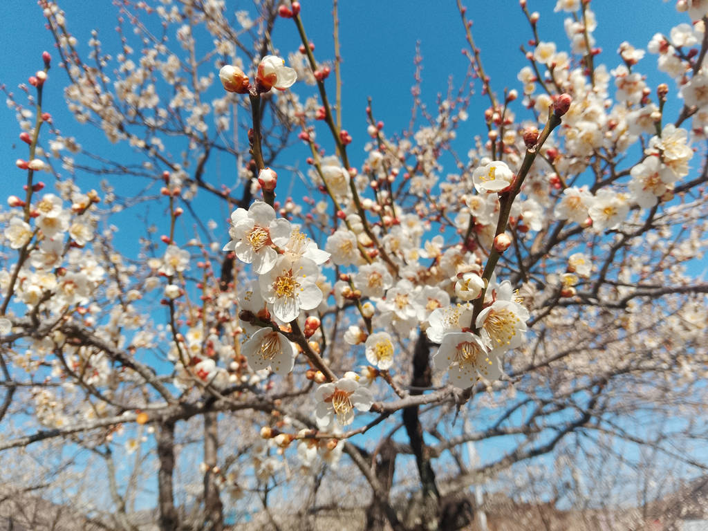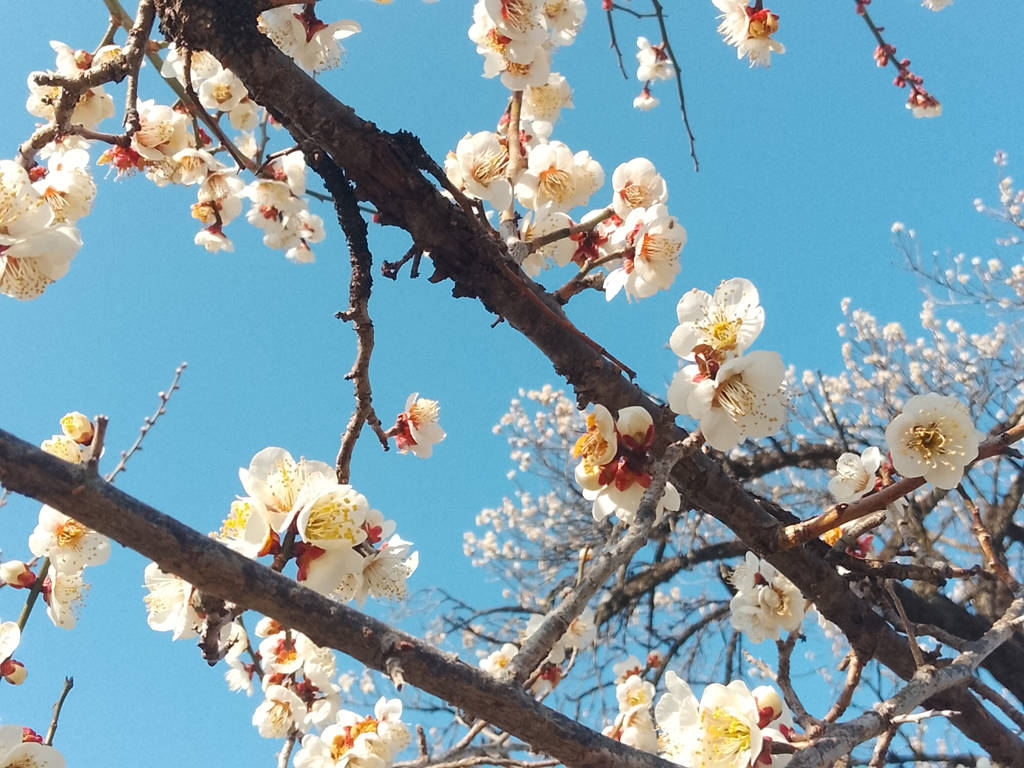 青空に浮かぶ梅というのも実にいいですね。曇天じゃ、こうは行かない。